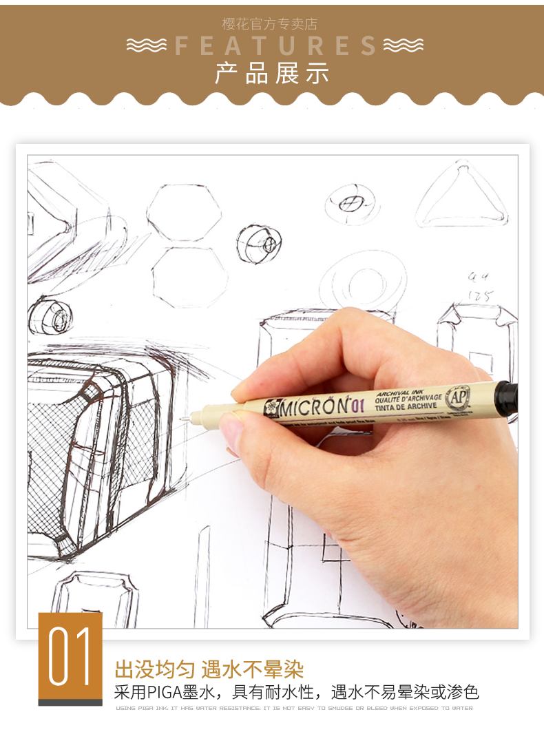 日本樱花勾线笔08【0.5mm】黑色 针管笔绘图笔