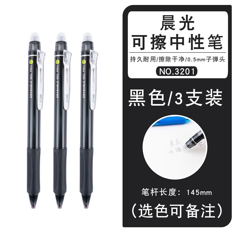 晨光(MG) 晨光可擦笔热易擦笔芯中性笔摩可擦AKPH3201擦拭笔 黑色3支(可备注颜色)