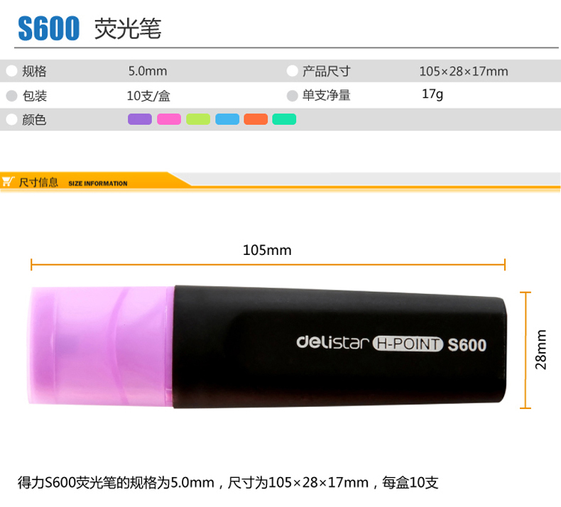 得力(deli)S600 标记醒目荧光笔(黄色) 单支装