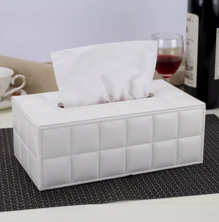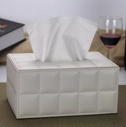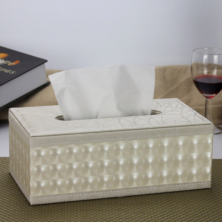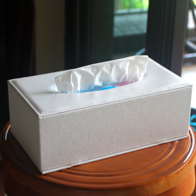 仿皮纸巾盒 小号白色羊皮纹