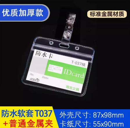 透明防水软质证件卡套PVC 横式+金属夹子(87*98MM)
