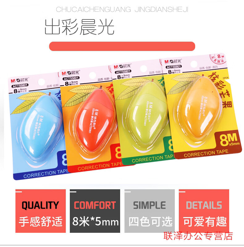 晨光修正带炫彩芒果系列学生改正带涂改带卡通水果8米实惠装便携式创意改错带ACT55801学习文具用品 4个 / 1套