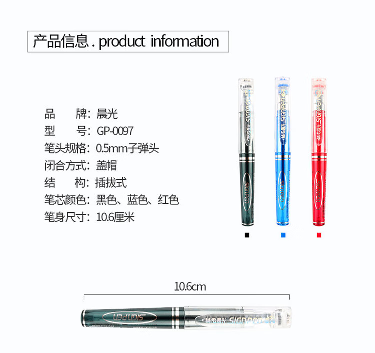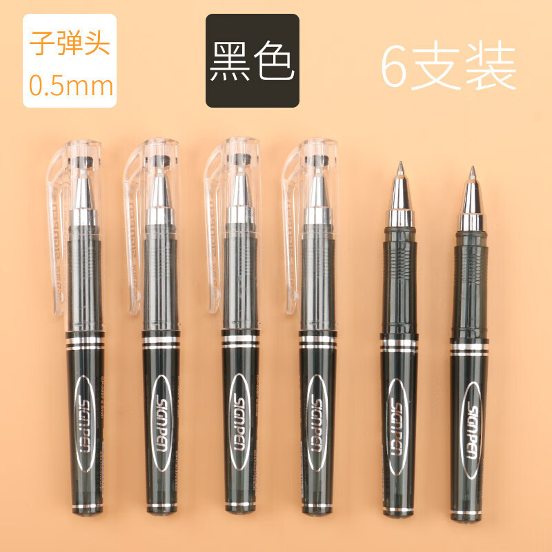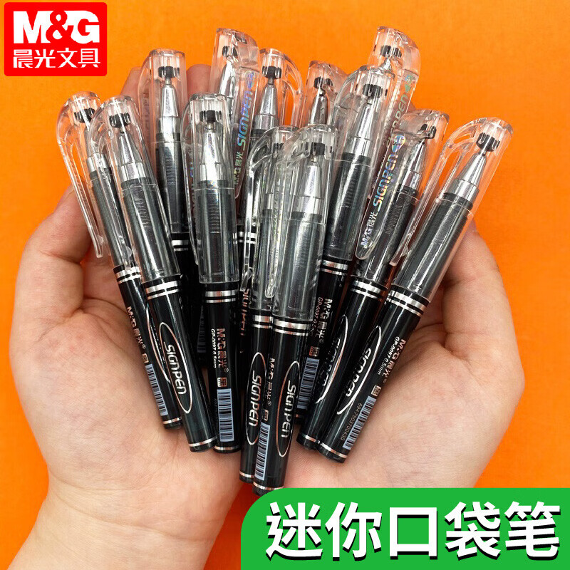 晨光(M&G) 口袋笔短款便携小号超短迷你中性笔/直液彩笔0.5头口袋式水笔短杆签字笔GP0097 6支黑笔【0097】