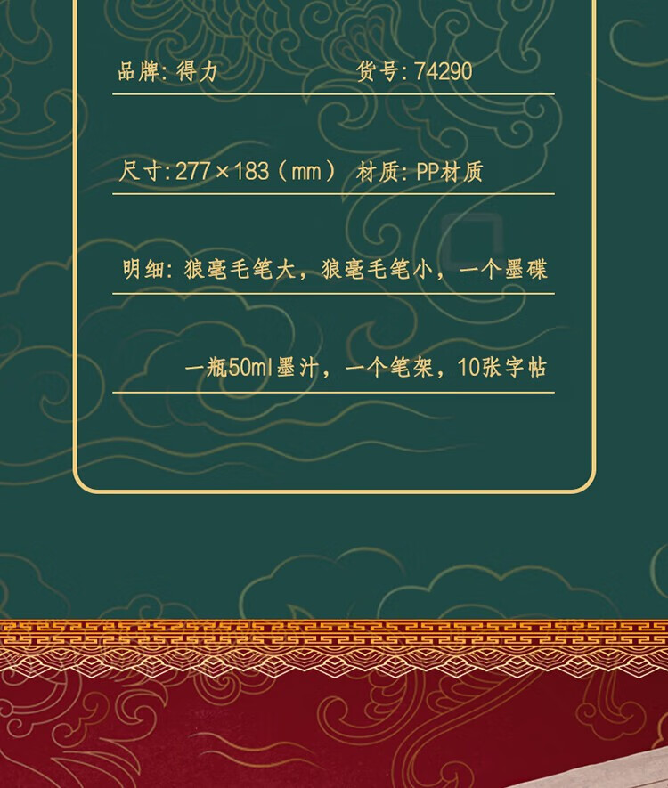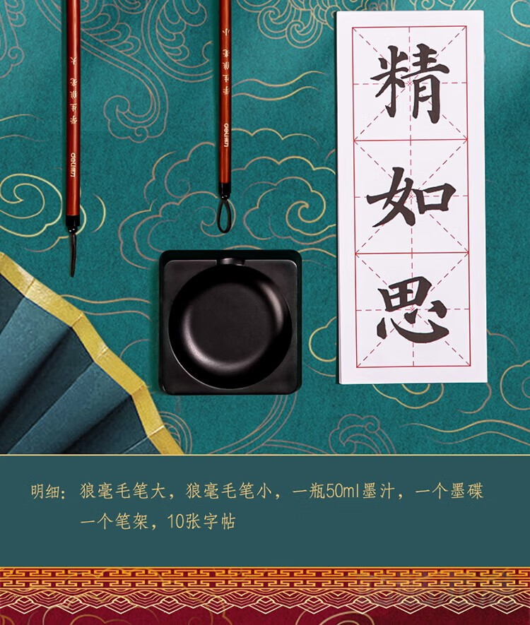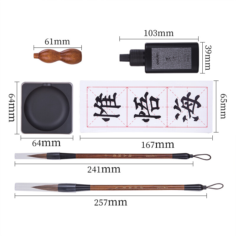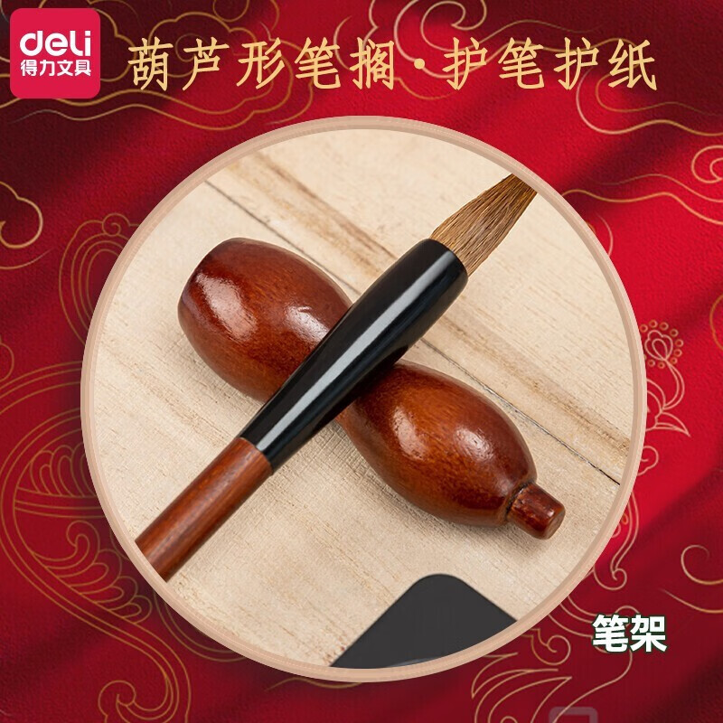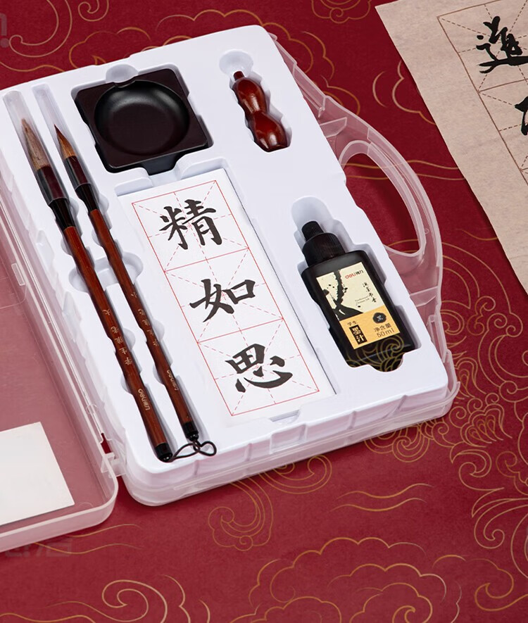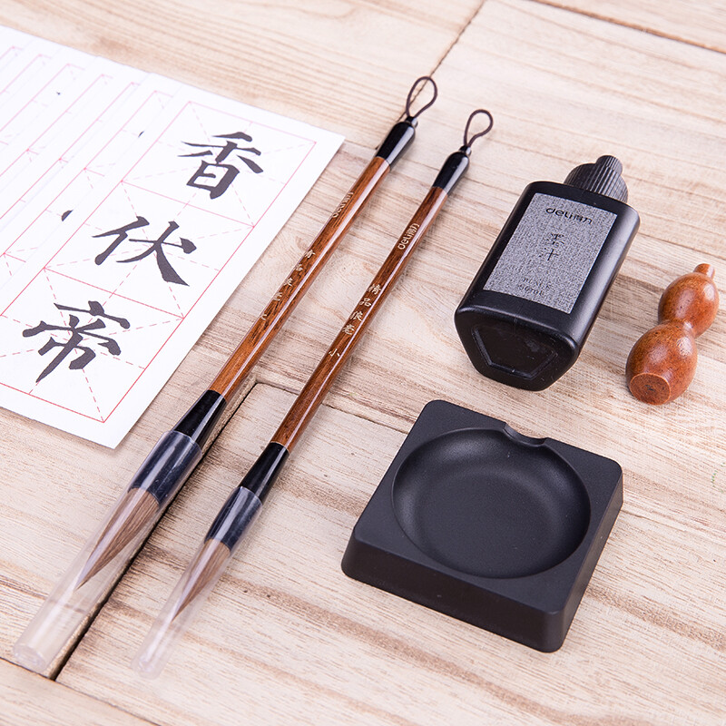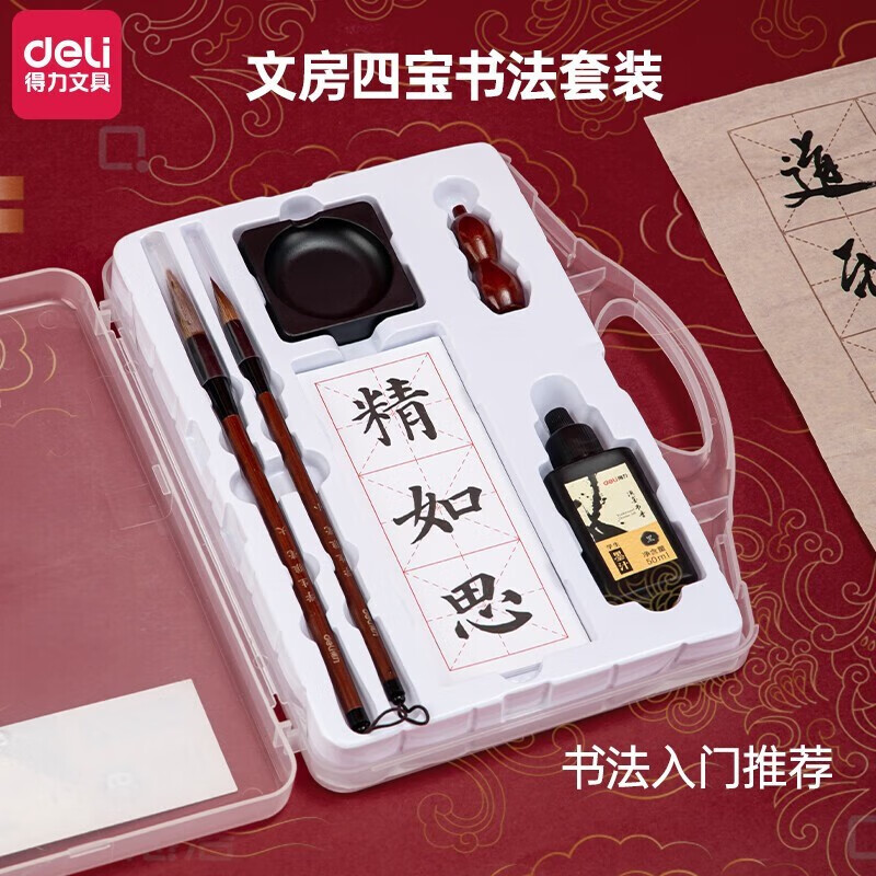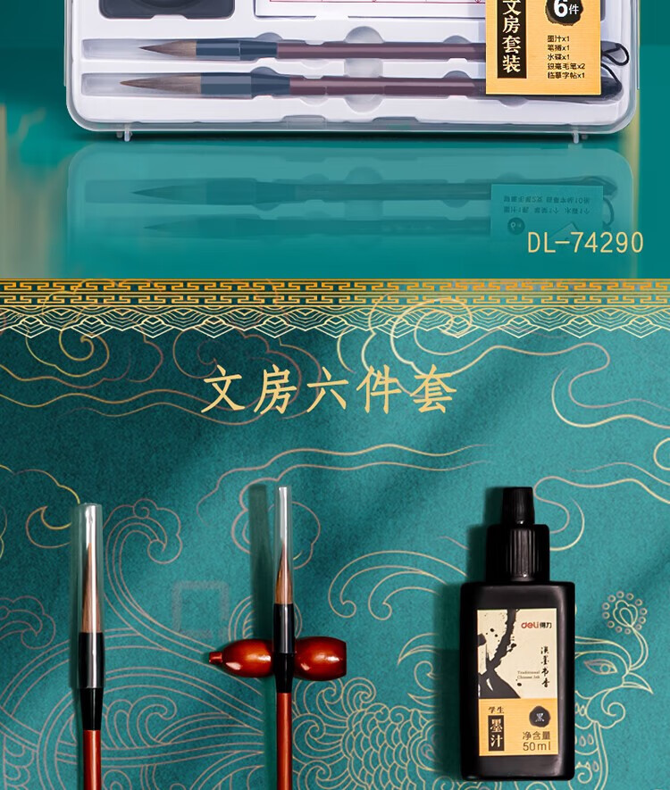 得力(deli) 文房四宝毛笔套装笔墨纸砚成人初学者字帖临摹学生书法入门套装 74290 6件套