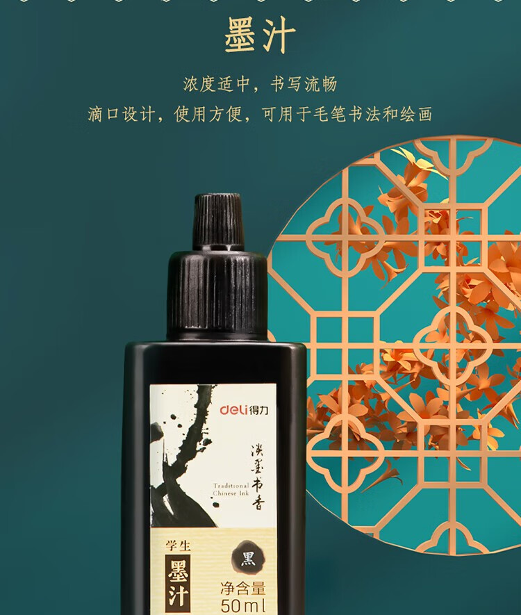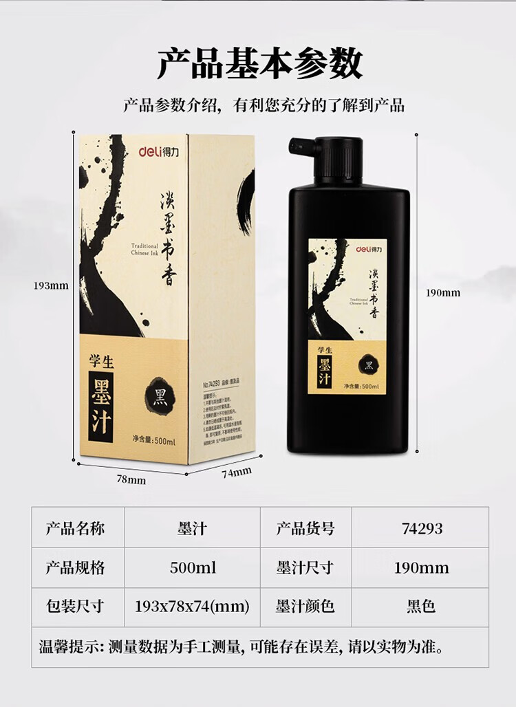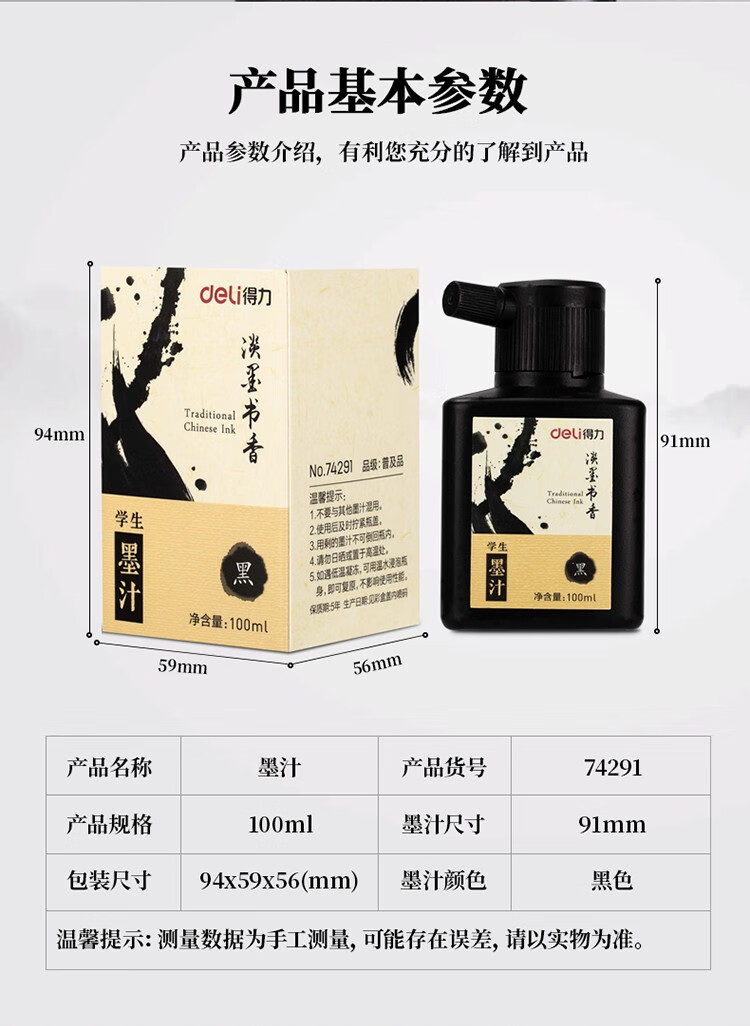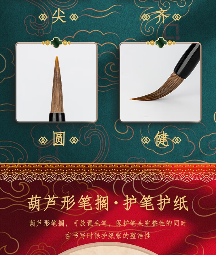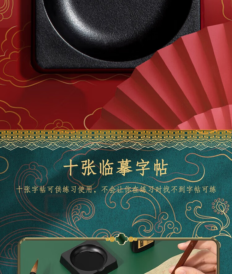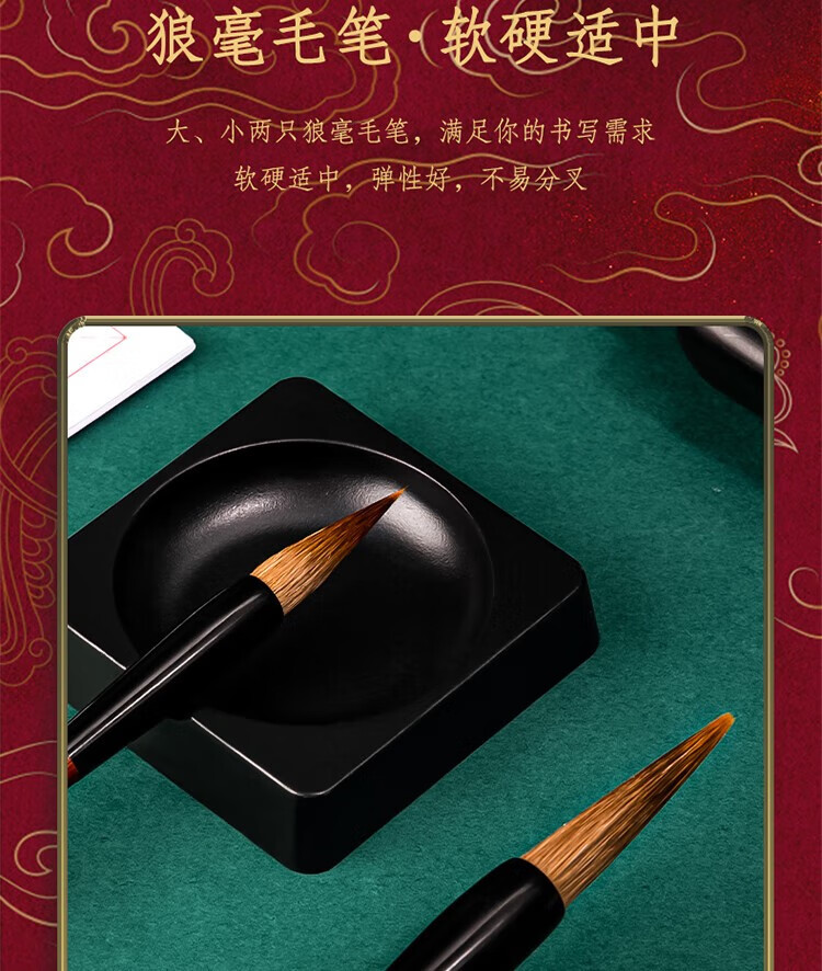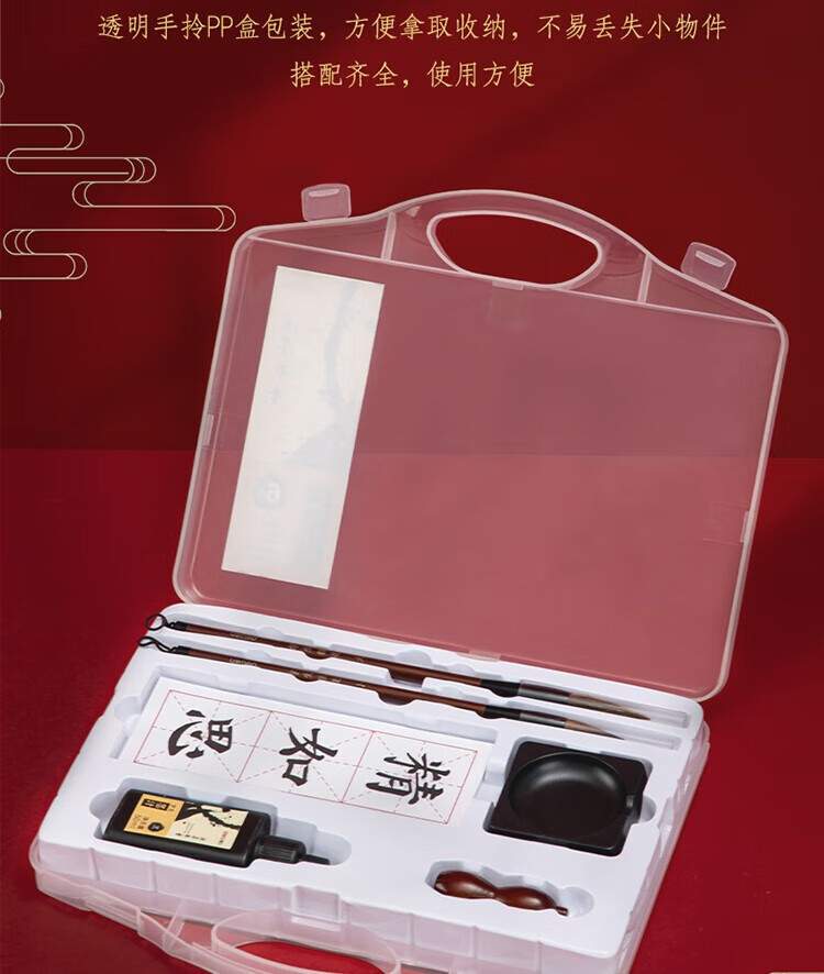 得力(deli) 文房四宝毛笔套装笔墨纸砚成人初学者字帖临摹学生书法入门套装 74290 6件套