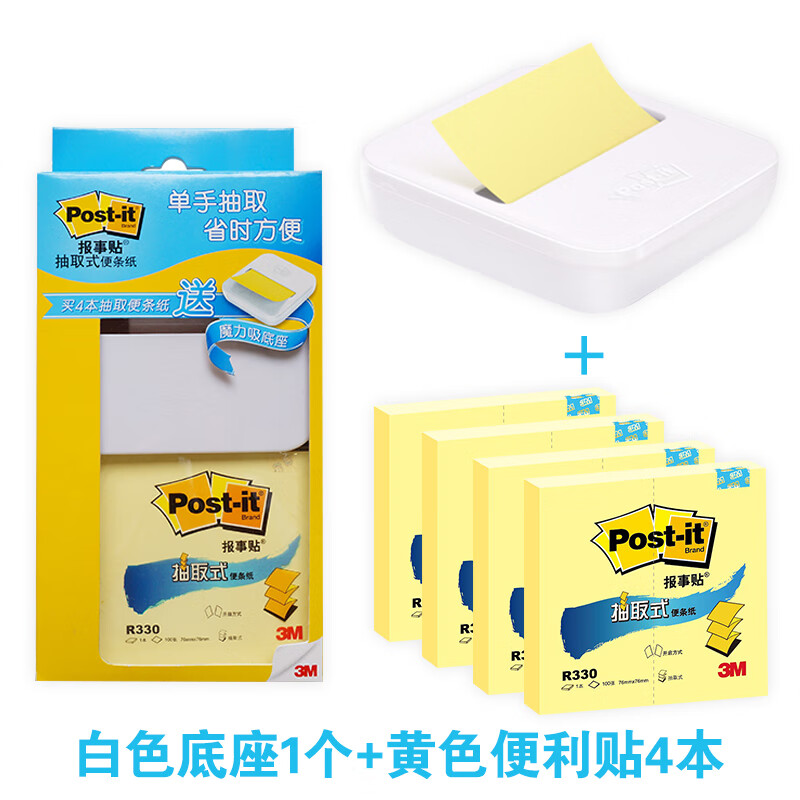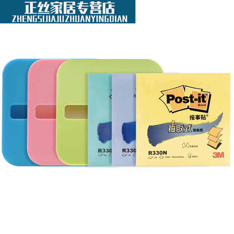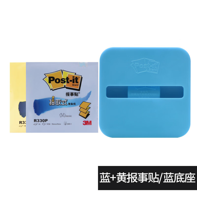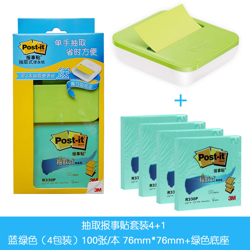 3M post-it报事贴抽取式便利贴n次贴便条纸签纸R330P水晶底座套餐 蓝绿单本