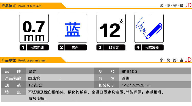晨光BP8106 蓝色 按动圆珠笔0.7mm
