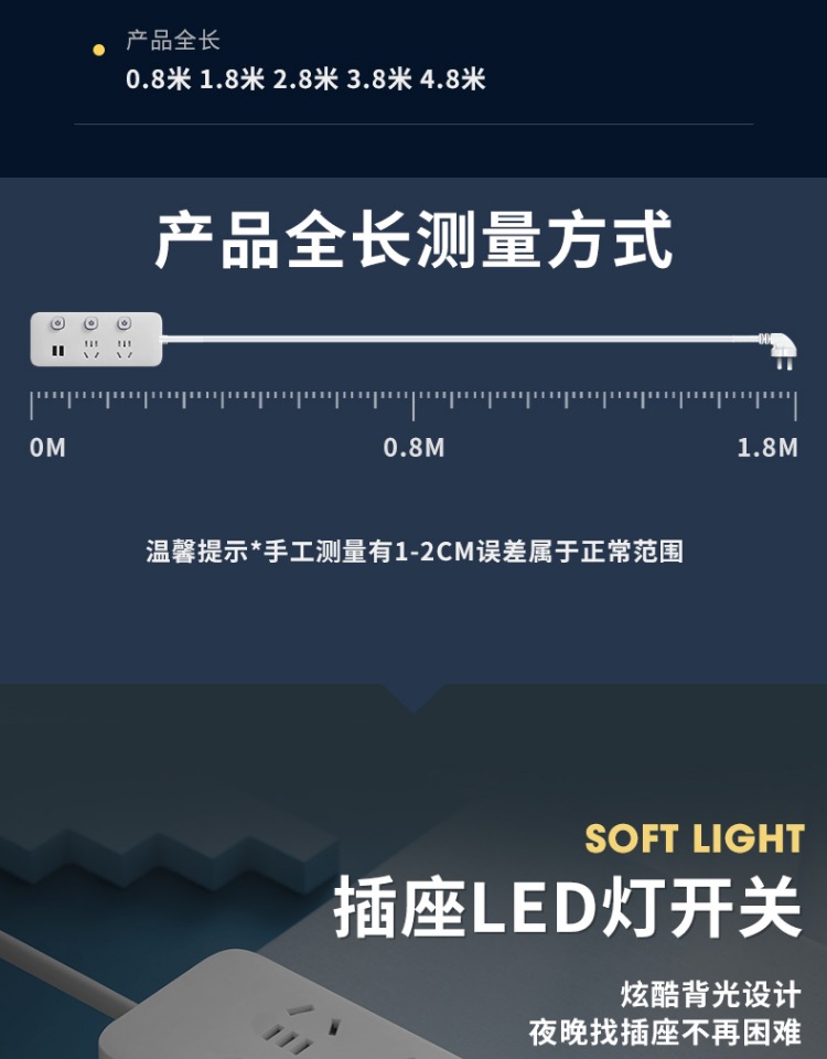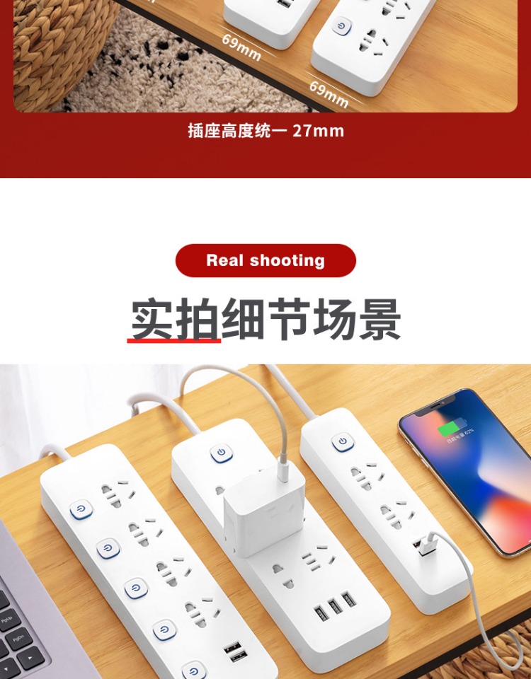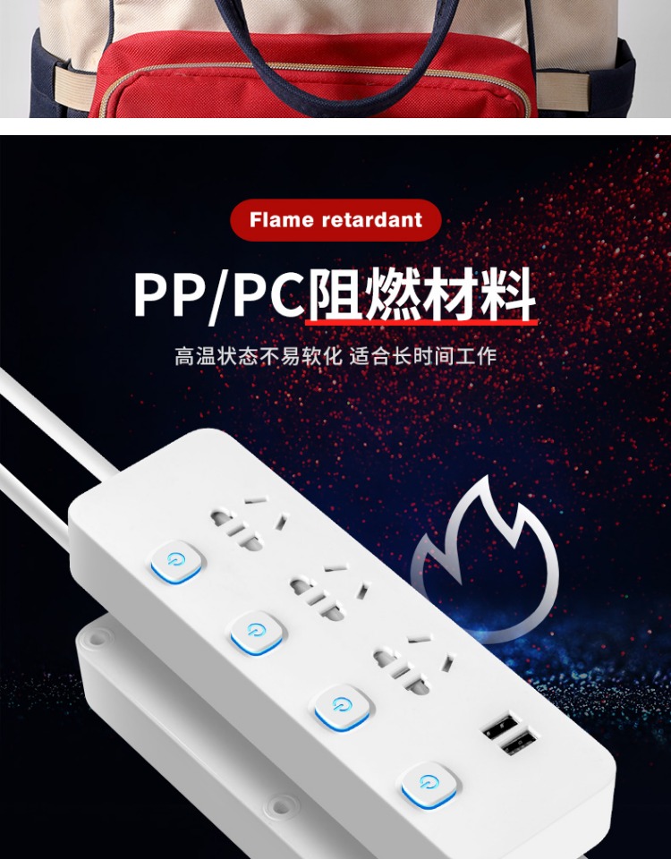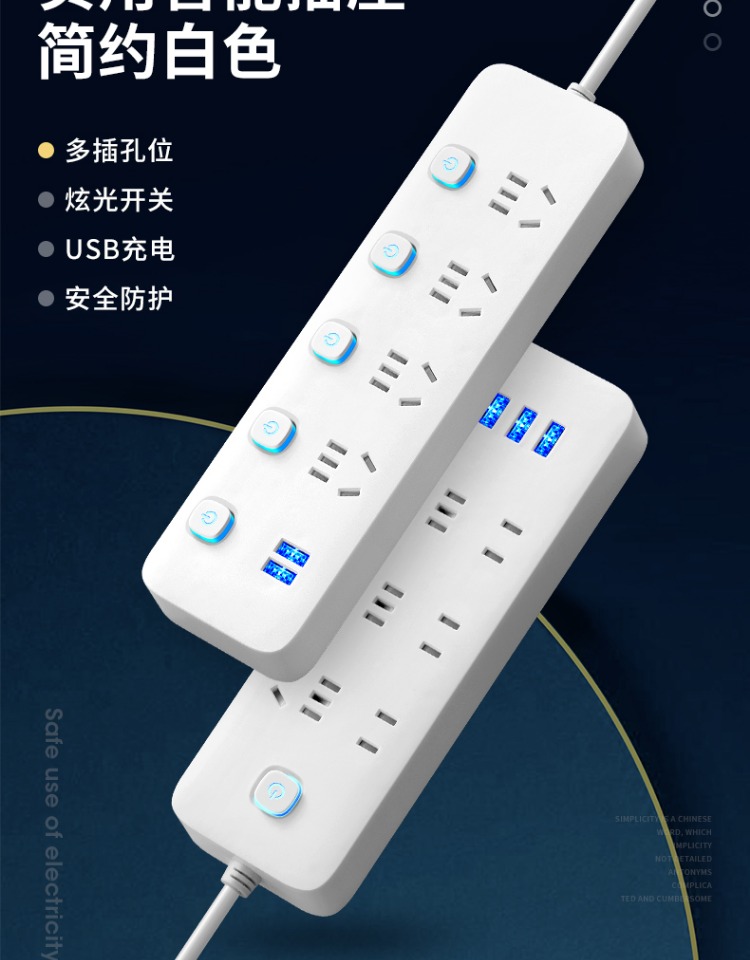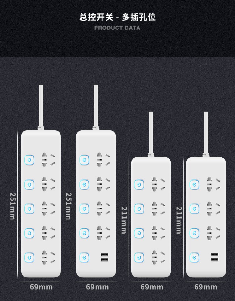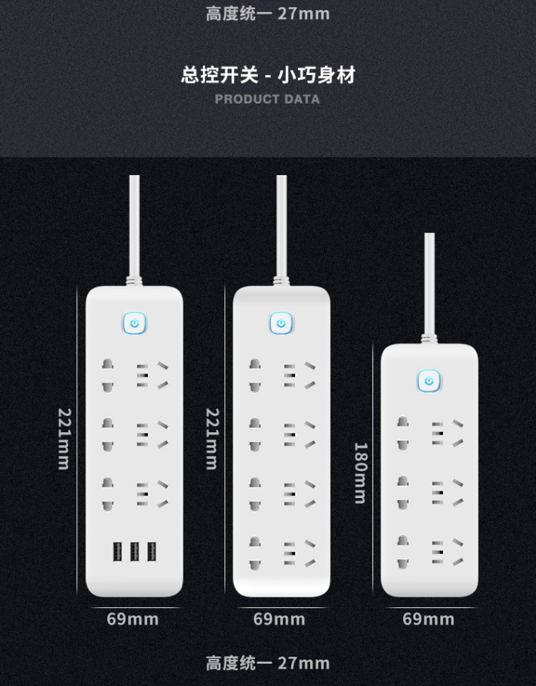 印典多功能拖线板6孔3USB 1.8米接线板
