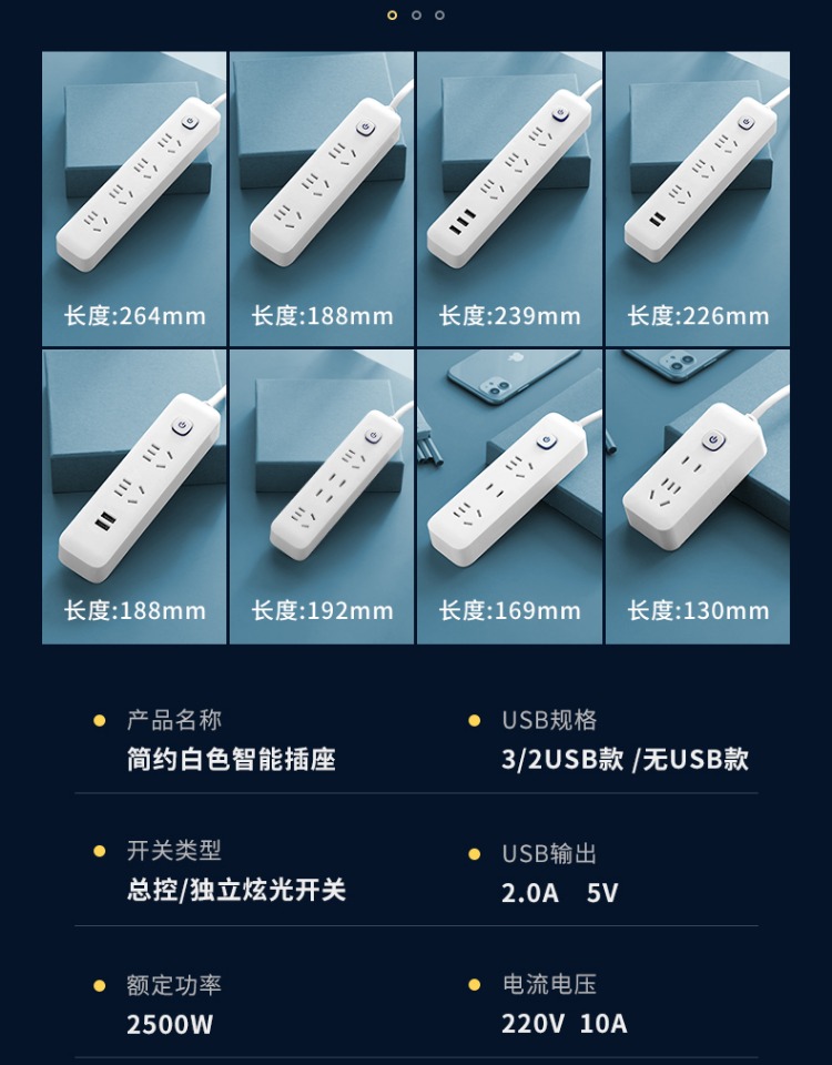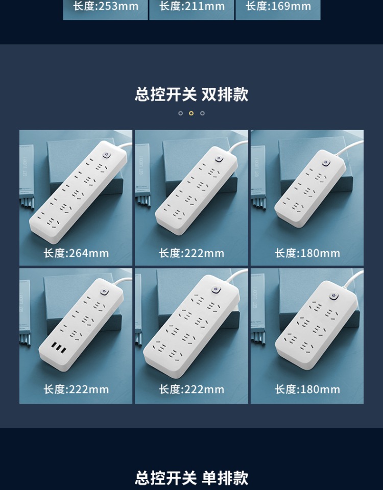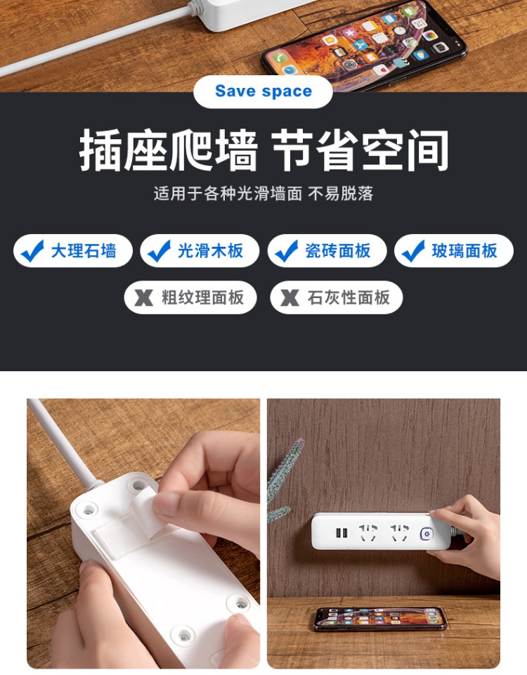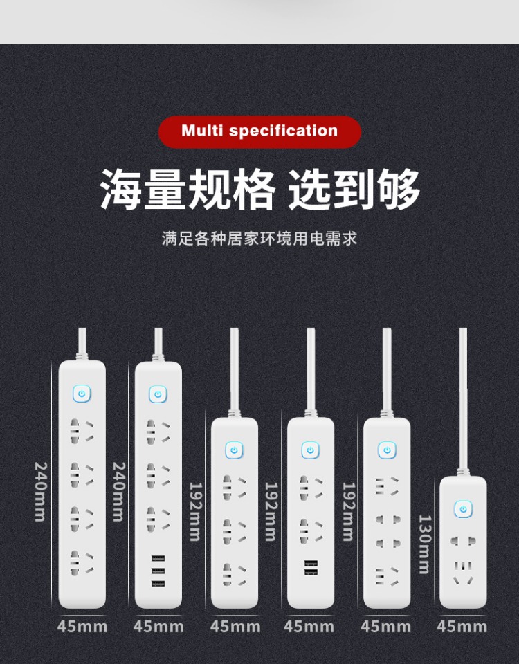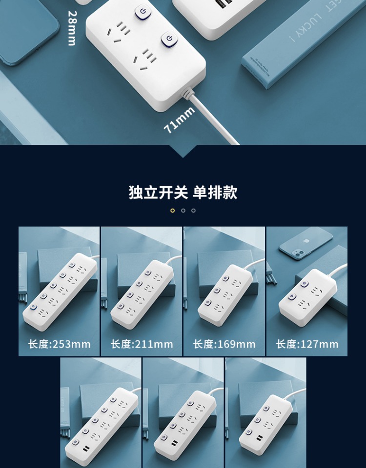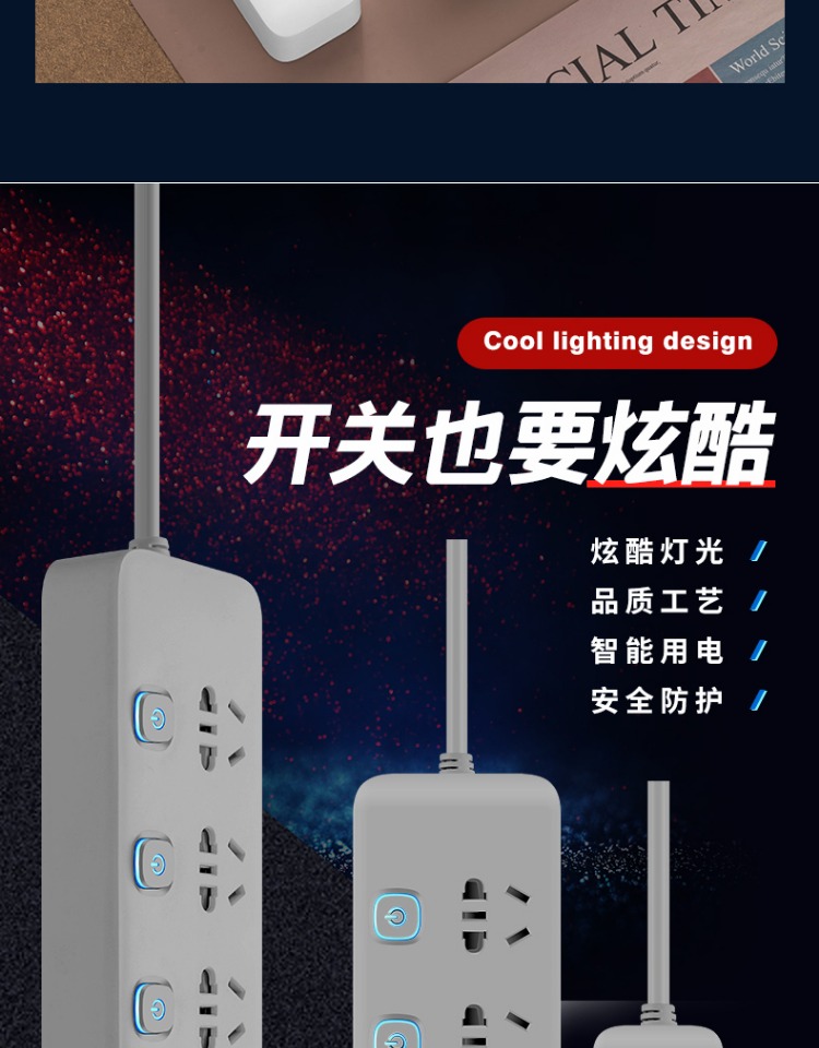 印典多功能拖线板6孔3USB 1.8米接线板