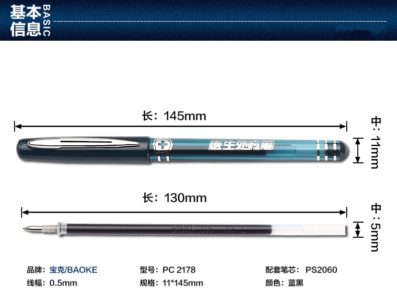 宝克中性笔2178 蓝黑色