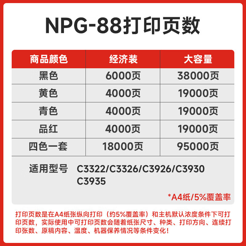 佳能(Canon)NPG-88原装墨粉盒适用C3322L/3326/3926/3930/3935