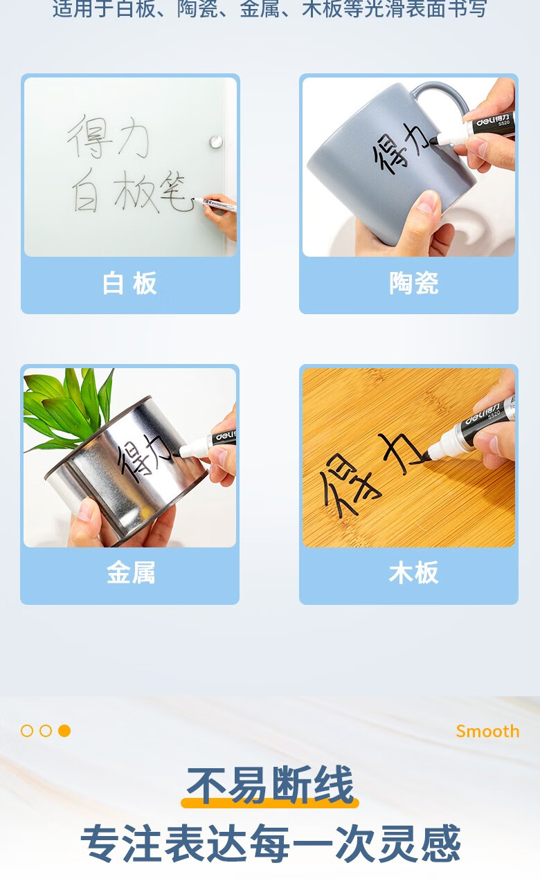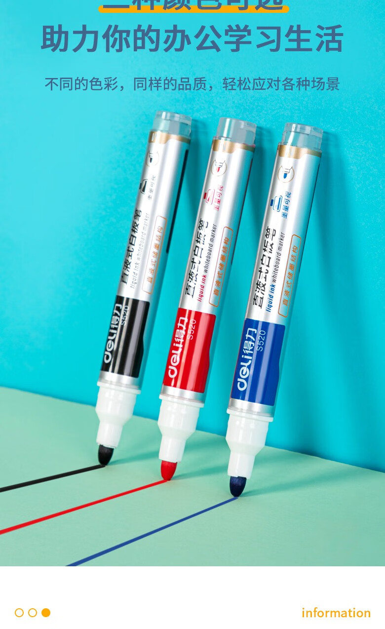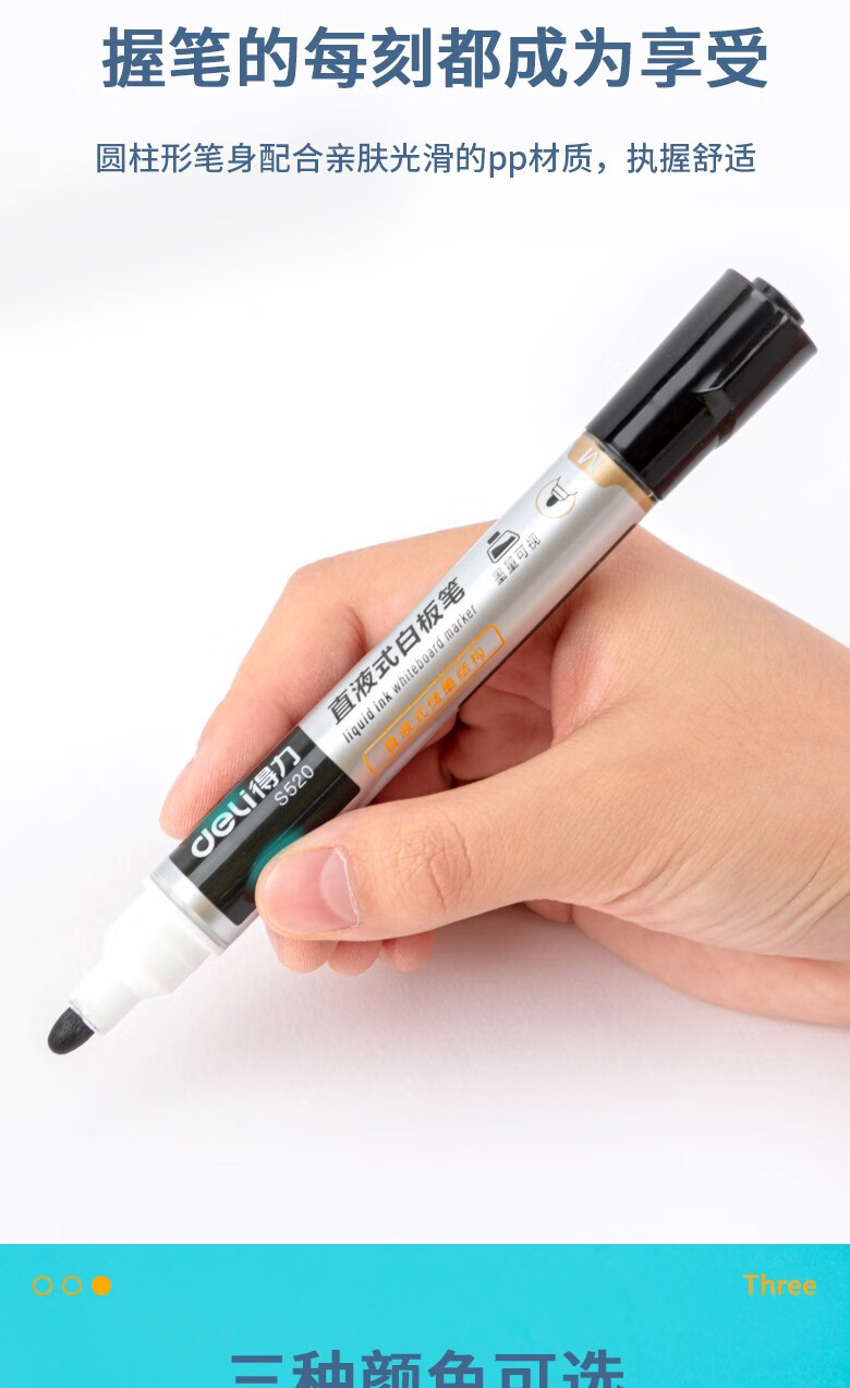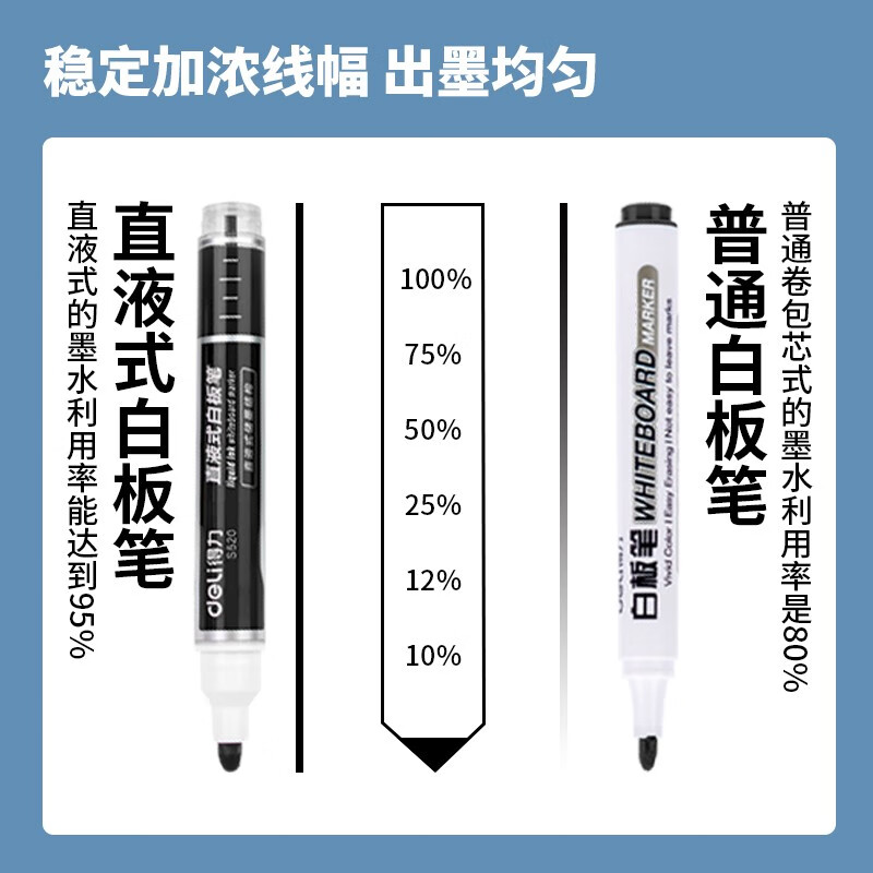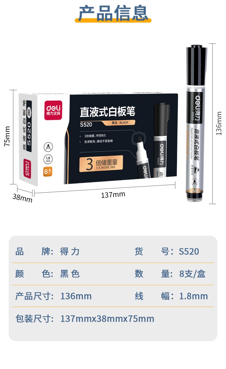 得力S520直液式白板笔 黑色