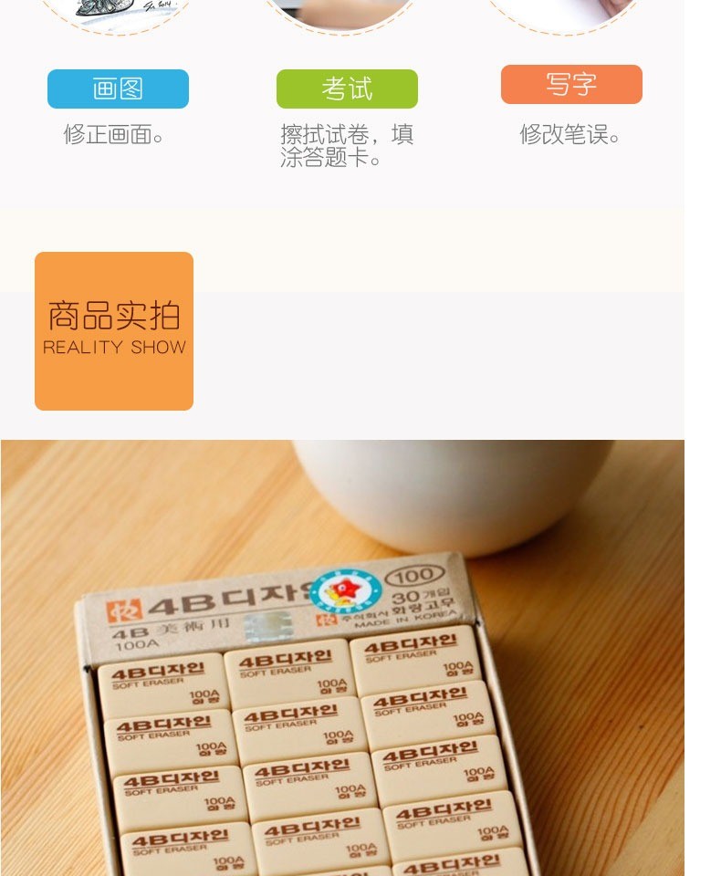 南韩4B橡皮黄100A(小号)