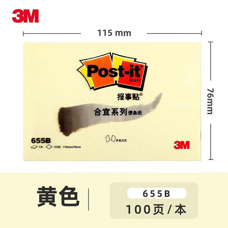 3M便条纸报事贴655B黄色115*76mm