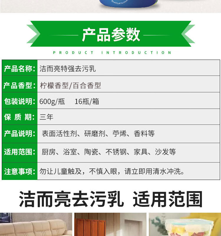 潔而亮洁而亮特强去污乳液多用途功能清洁剂柠檬厨房去油污强力去污垢 柠檬×1瓶