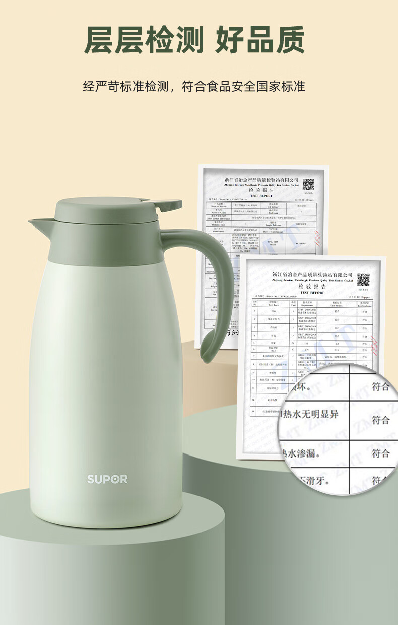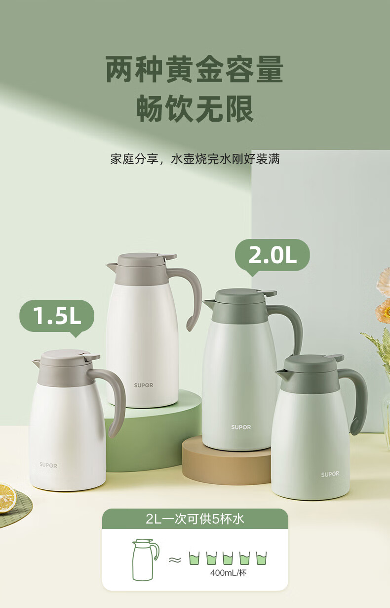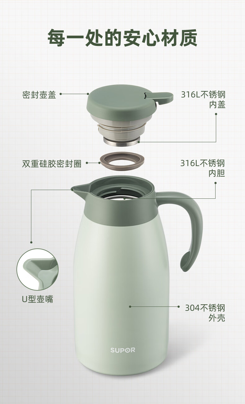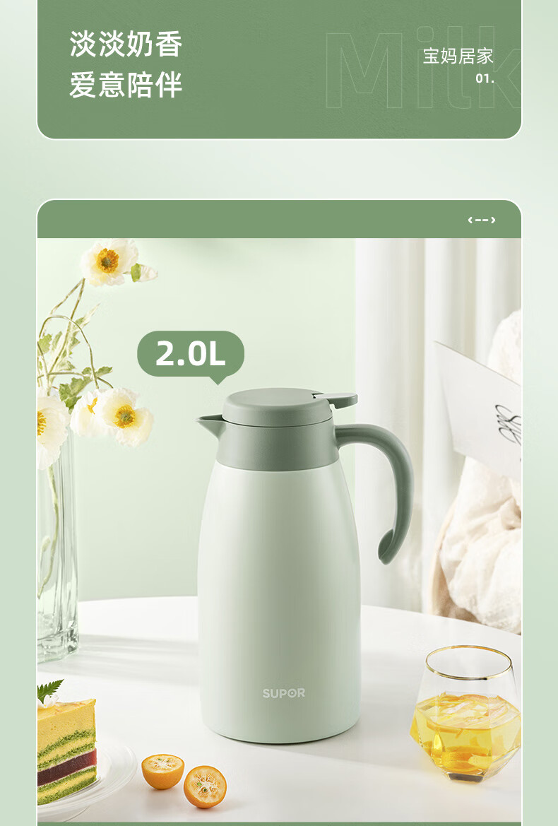 苏泊尔保温壶 2L白色 不锈钢真空保温瓶316L