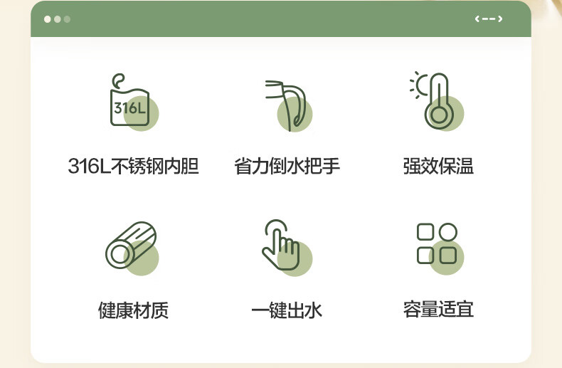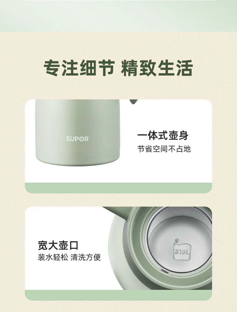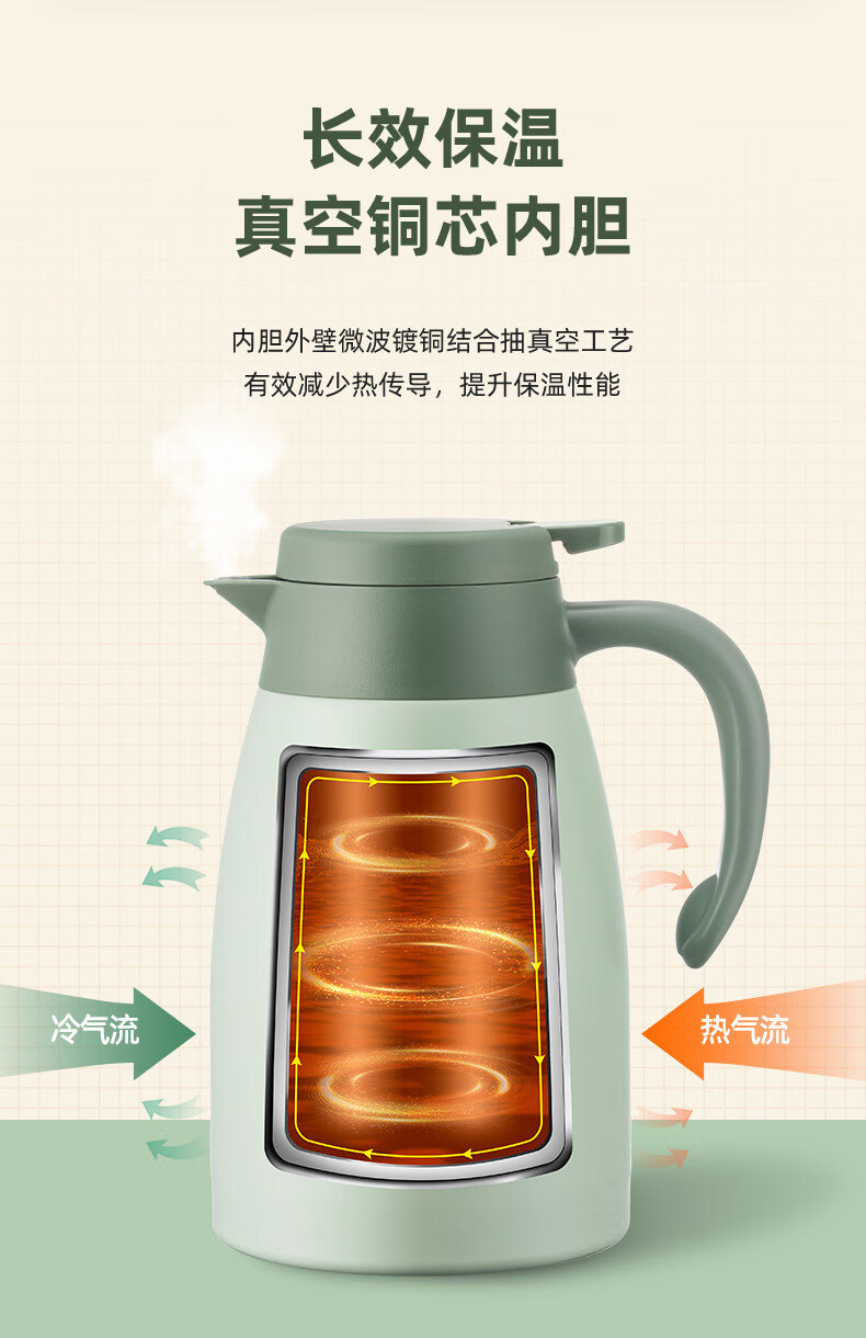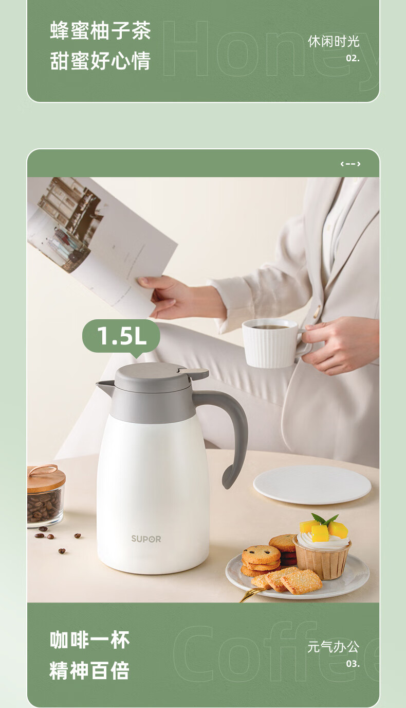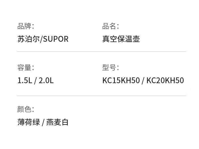 苏泊尔保温壶 2L白色 不锈钢真空保温瓶316L
