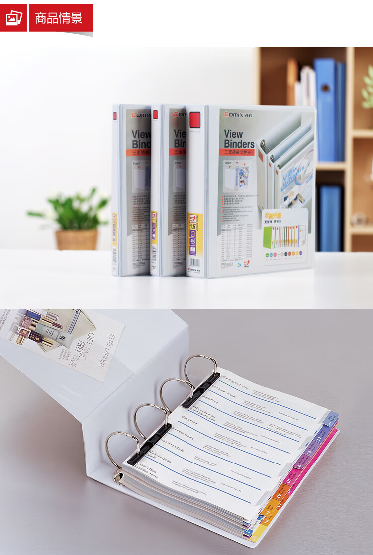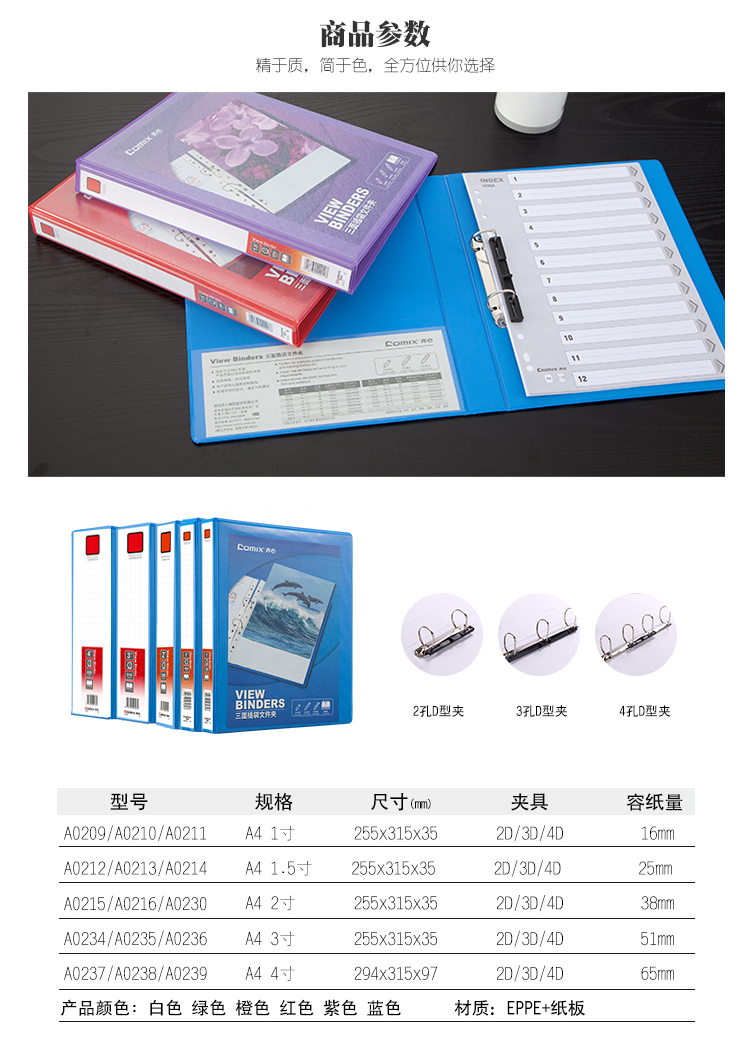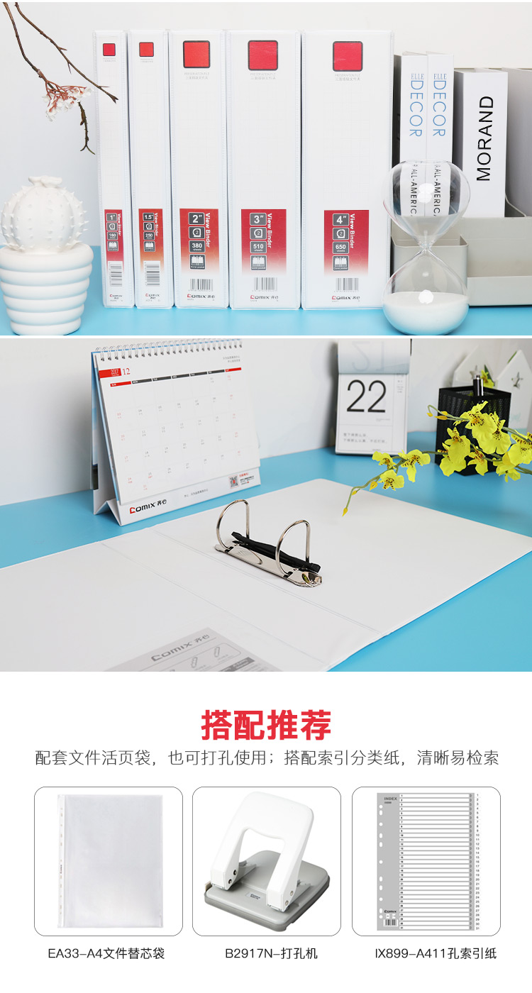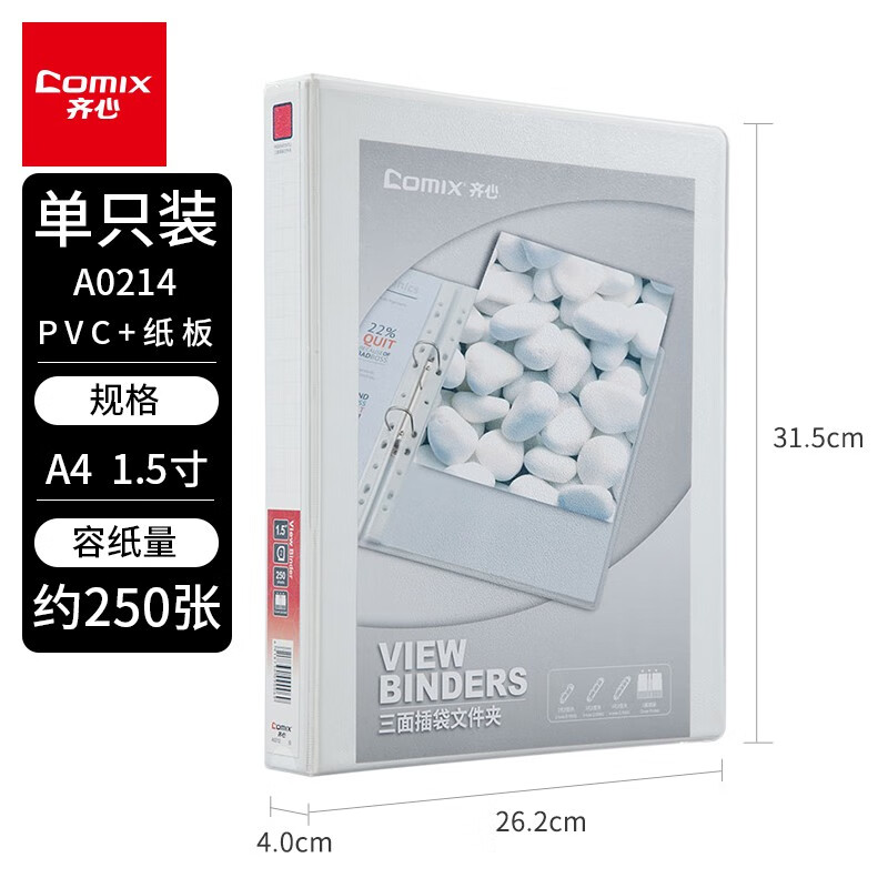 齐心 白色D型加插封面文件夹A0214/1.5寸4孔(容纸量250张)