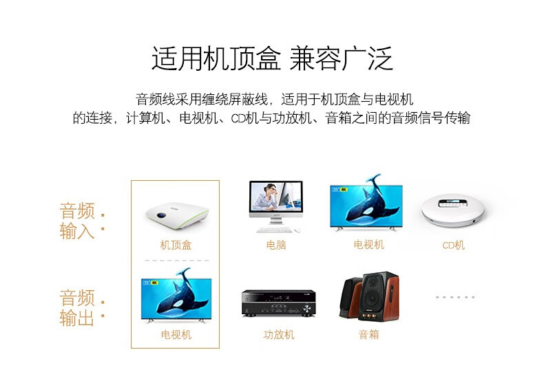 一分三电视机视频连接线机顶盒功放机音响DVD音箱转换线 2米
