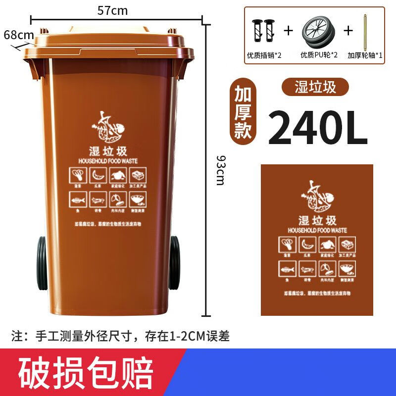 垃圾桶 240升加厚咖色【湿垃圾】特大型