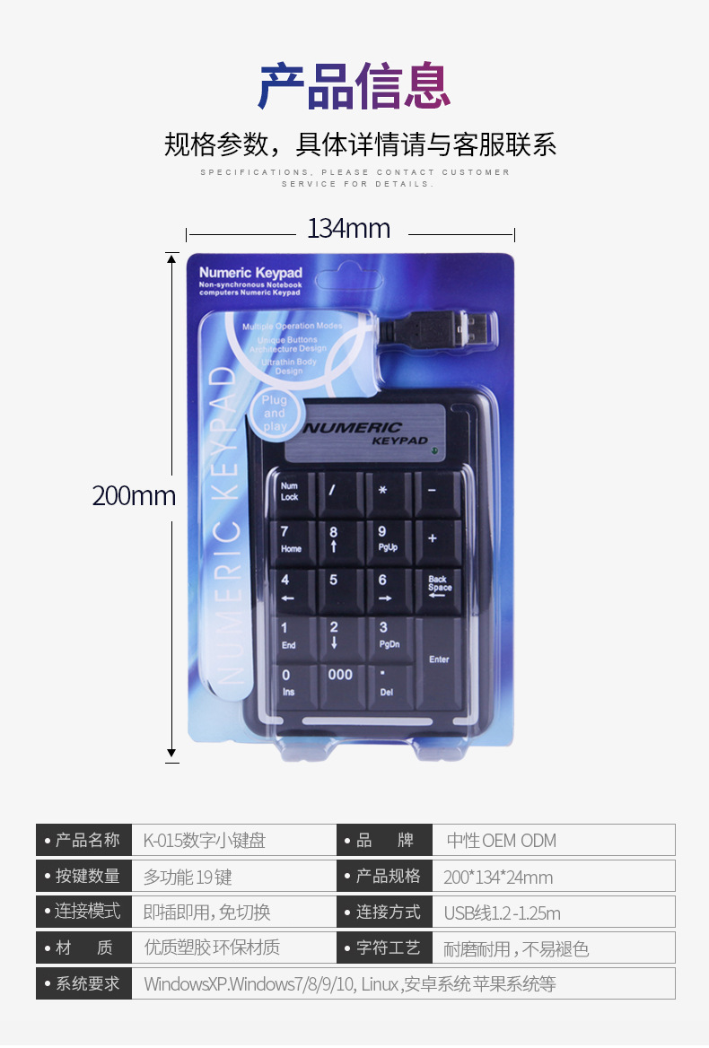 有线数字小键盘 USB接口