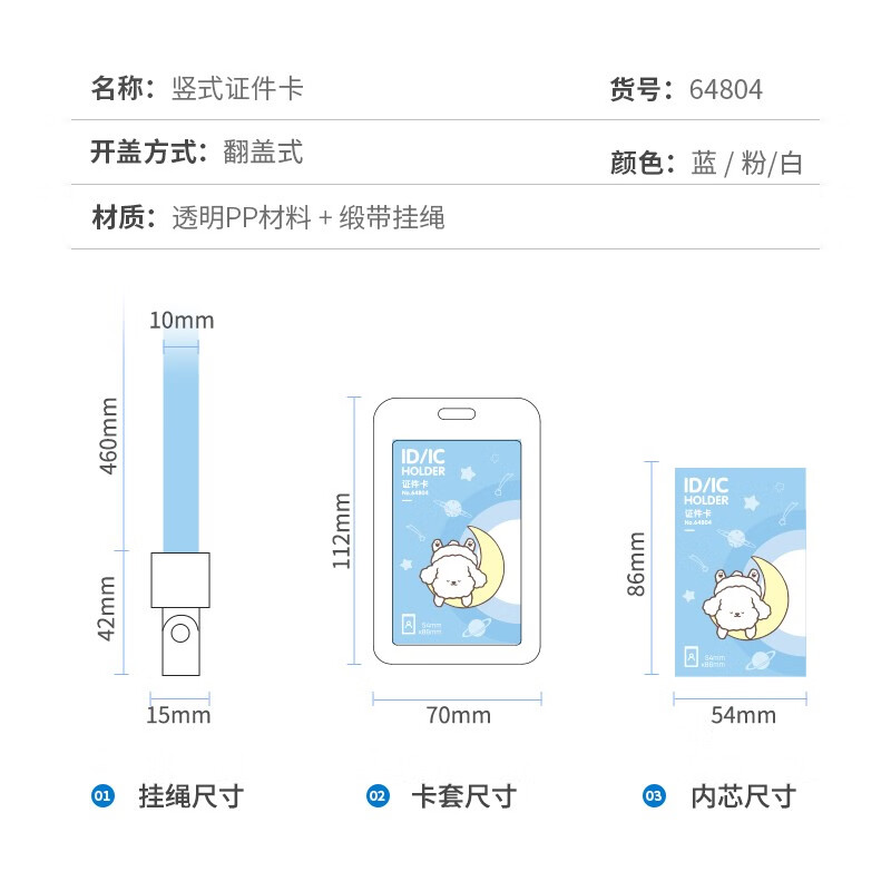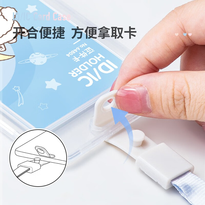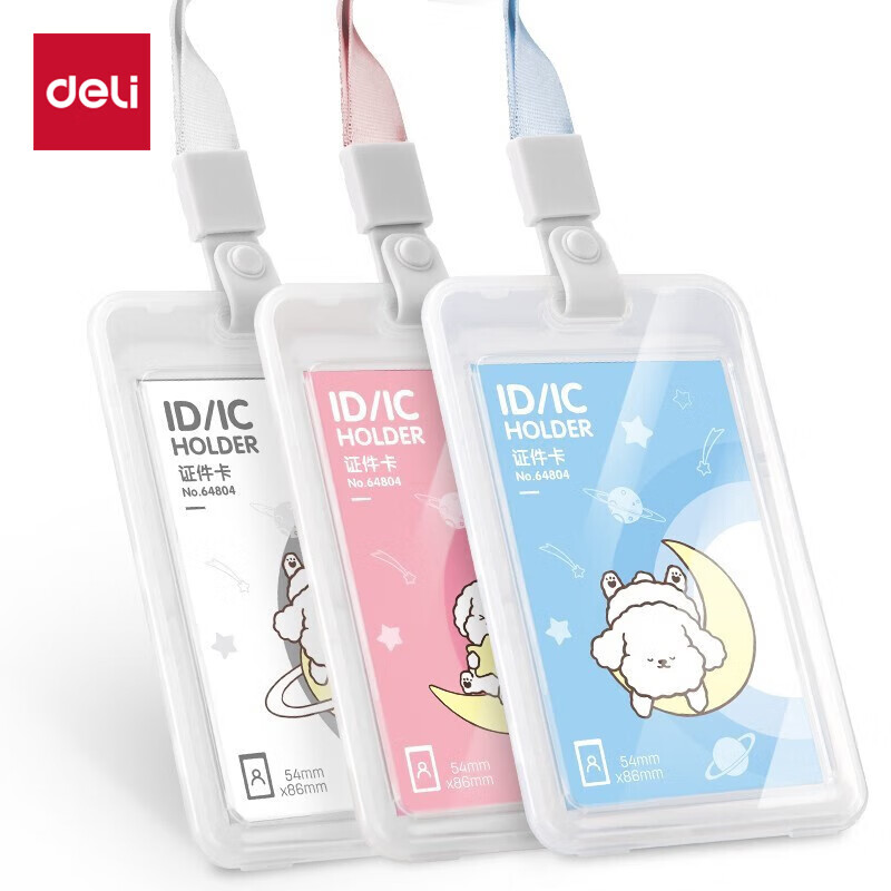 得力(deli)卡通学生证件工作牌透明卡套 工牌公交卡套饭卡门禁地铁卡套 挂绳款 学生胸牌白色64804
