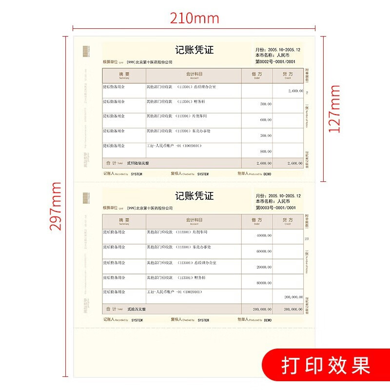 用友凭证纸KPJ101-A4 210*127金额记账凭证