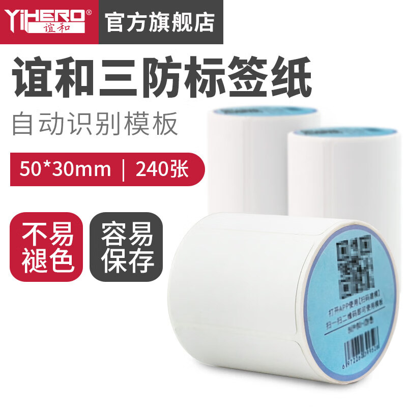 谊和不干胶标签纸 50*30 240张 三防热敏纸