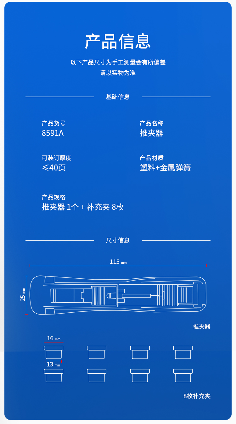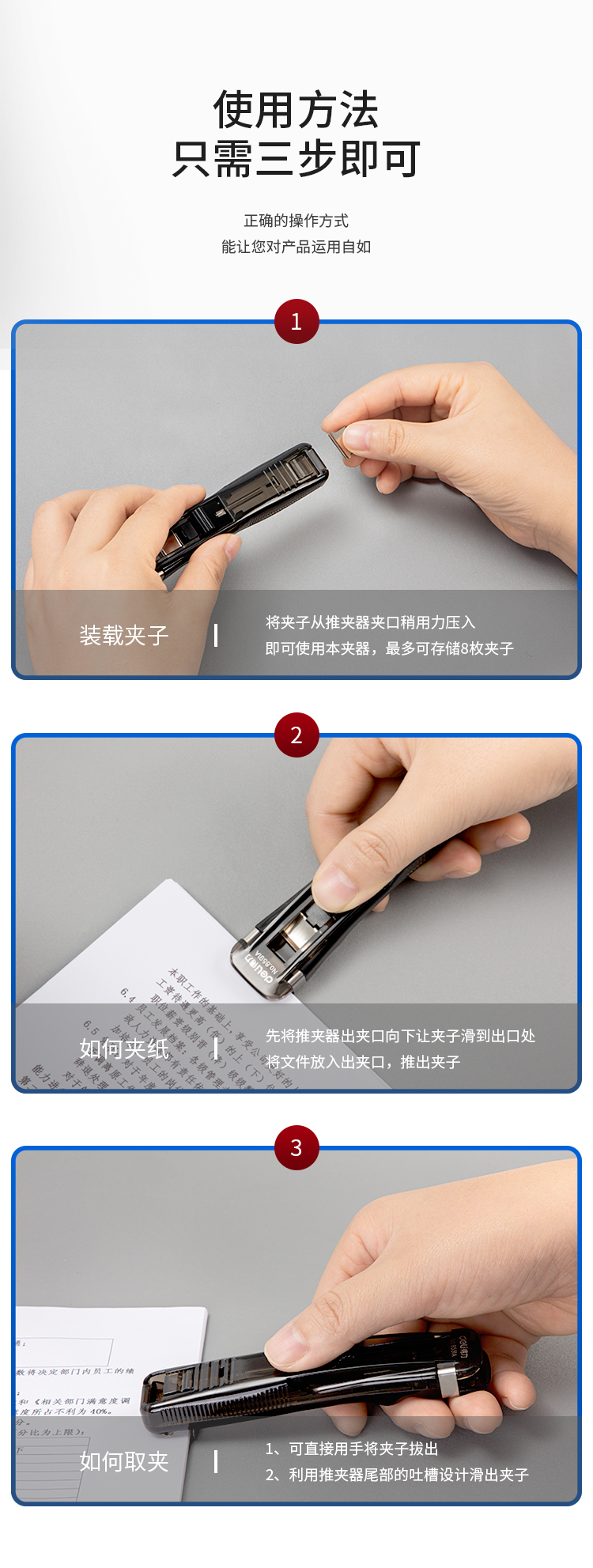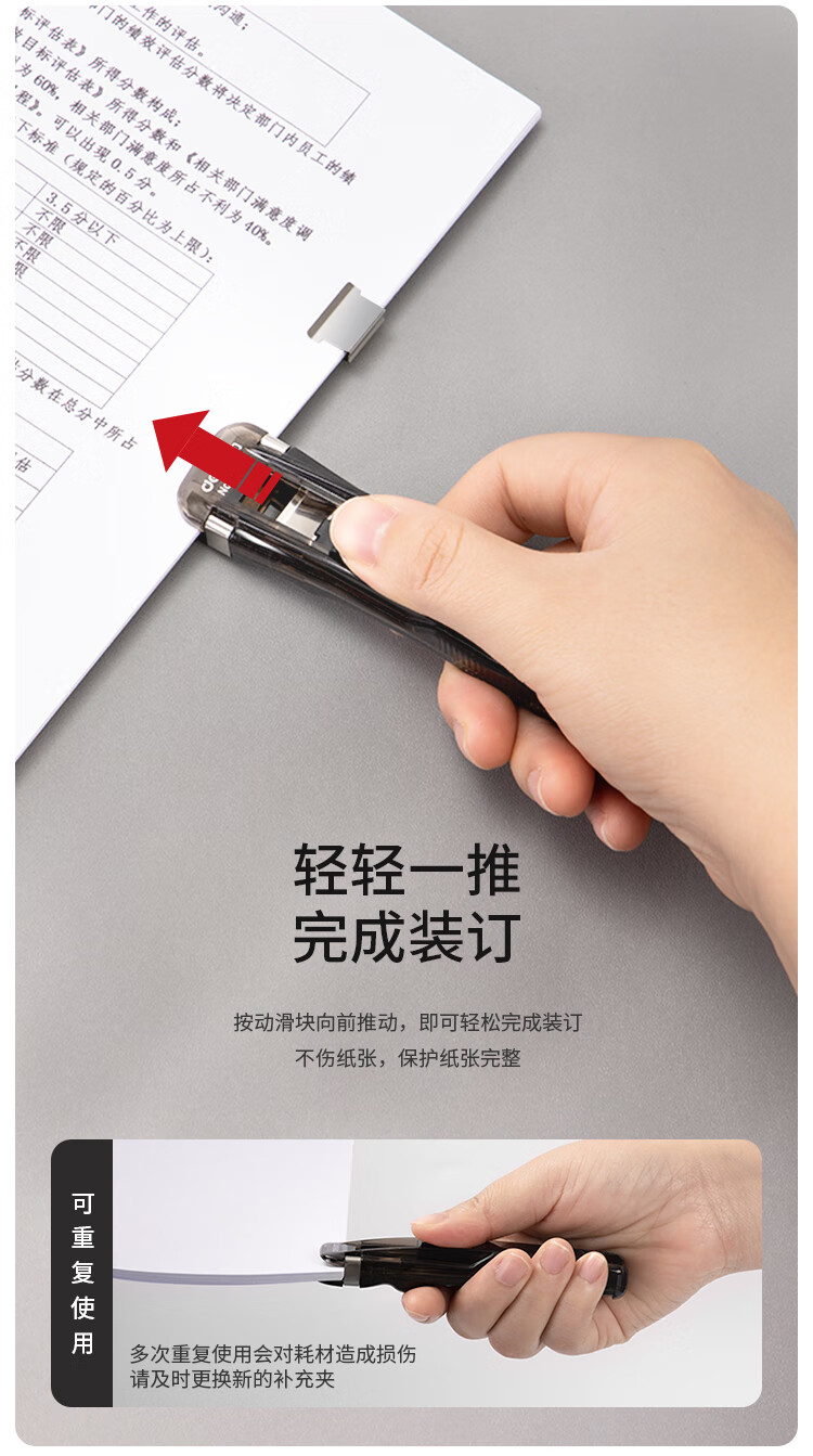 得力推夹器8591A+补充夹1盒 黑武士