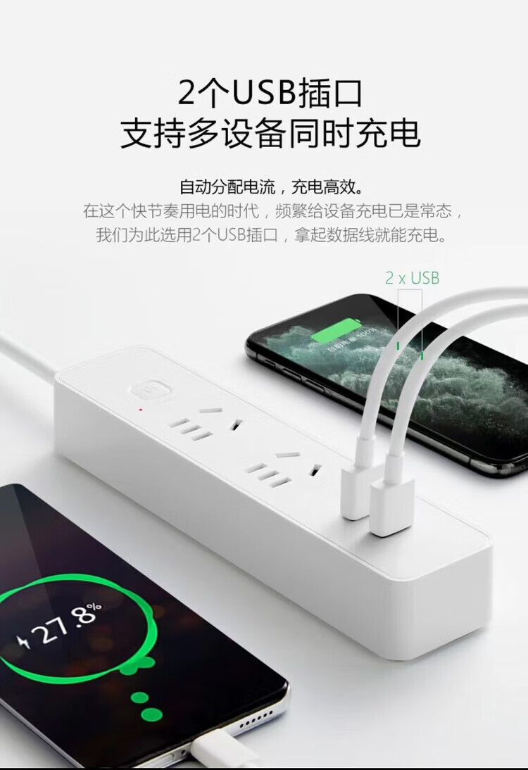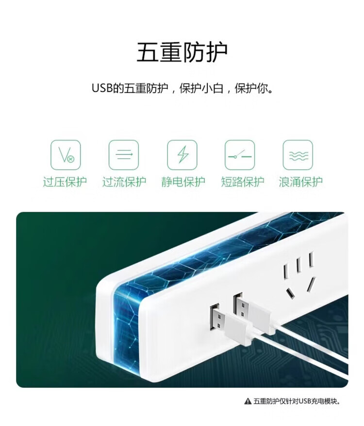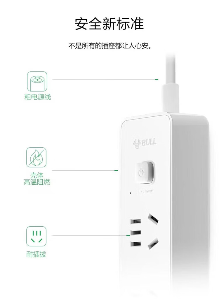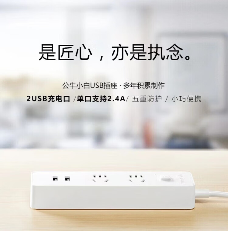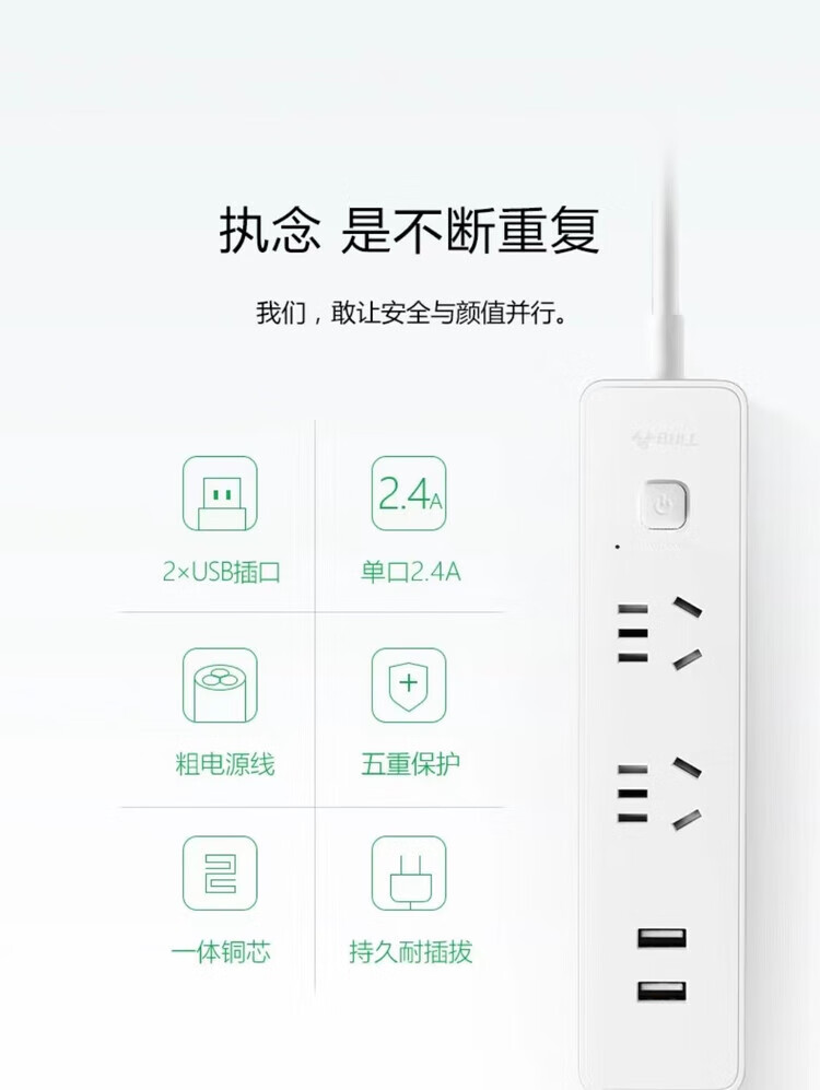 公牛GNV-UUA122 白色 新国标2位带USB电源插线板 1.5
