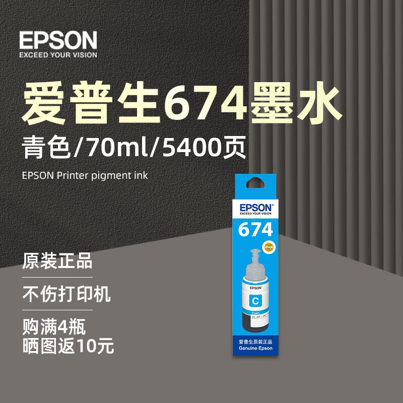 爱普生(EPSON)原装674墨水L801 805 810 850 1800打印机墨盒 674 青色墨水 原装 墨水