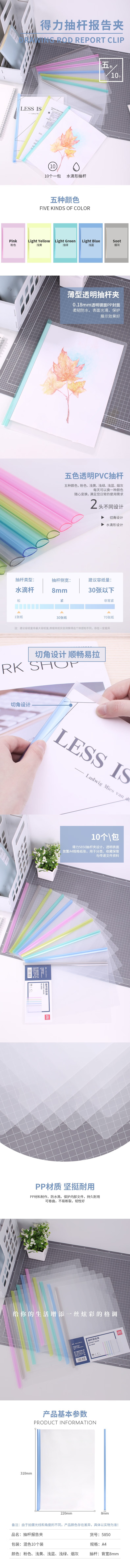 得力5536(混)透明抽杆报告夹218*310mm