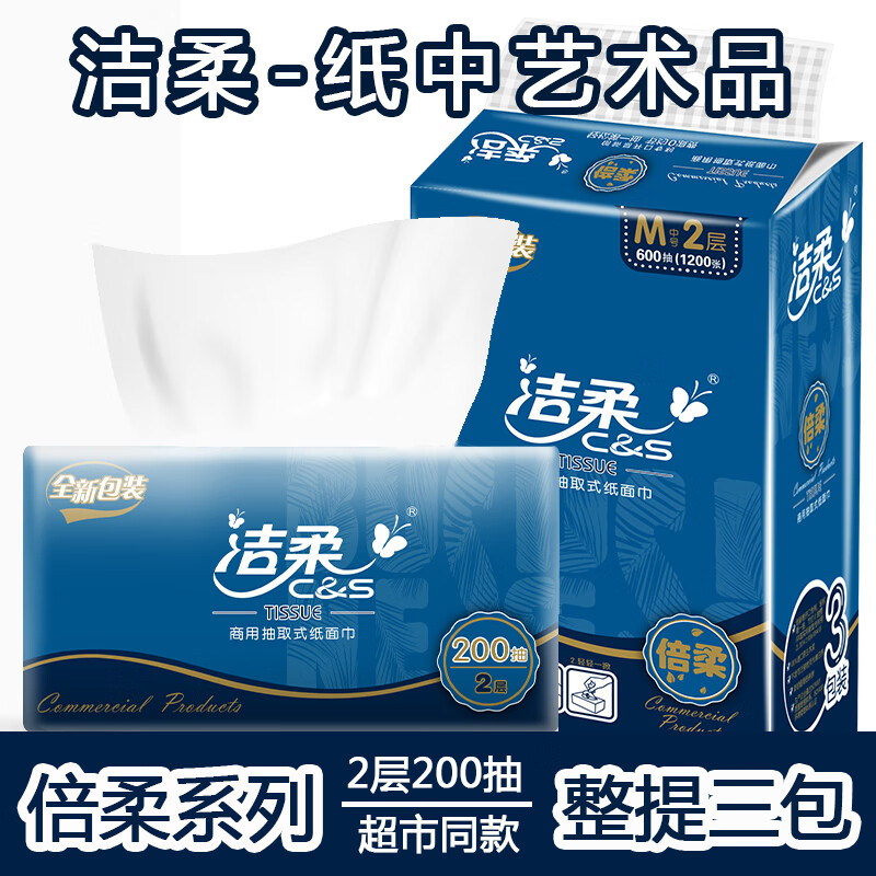 洁柔200抽纸2层抽取式面巾纸办公实惠装3包装 一提3包
