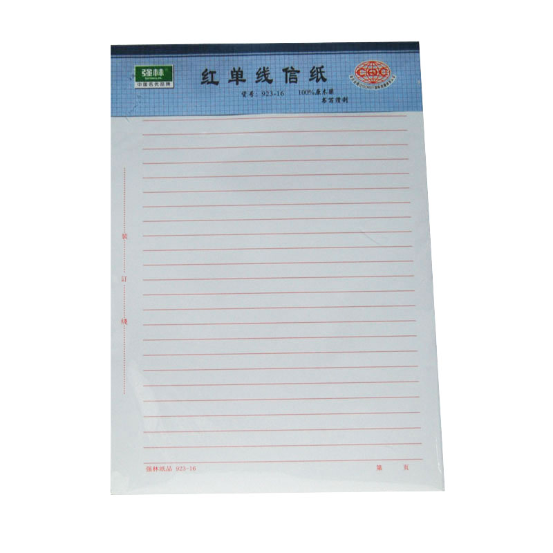 强林 923-16红单线信纸-16K(3本装)