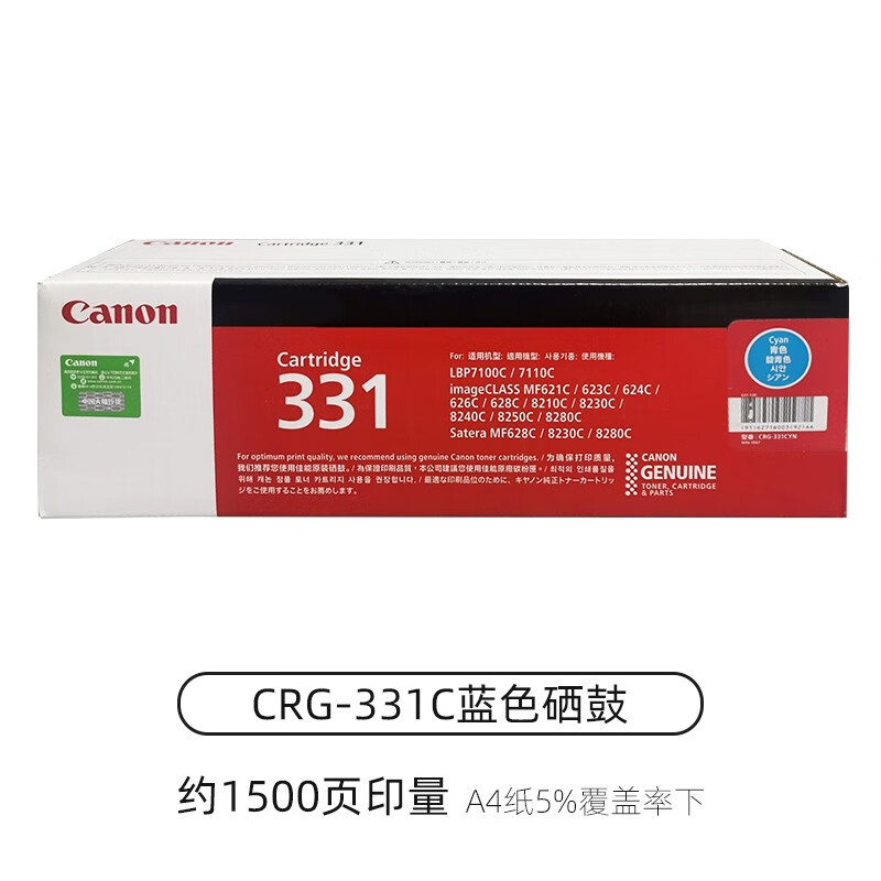 原装佳能CRG-331硒鼓 LBP7100CN MF8280Cw 8210 8230打印机碳粉盒 佳能CRG-331C青色硒鼓 1500页
