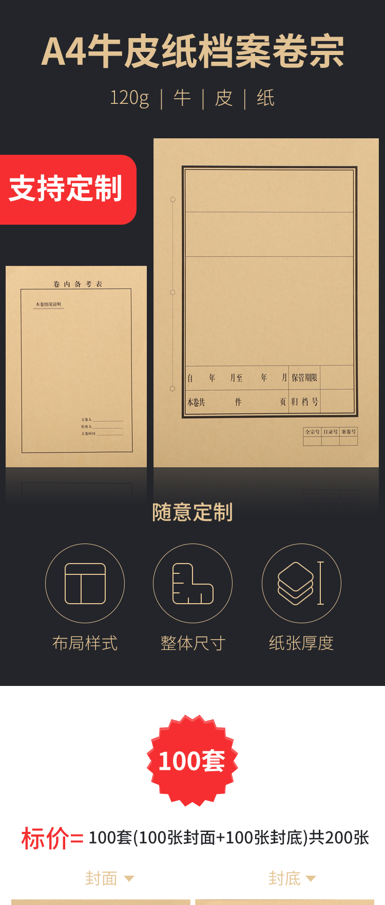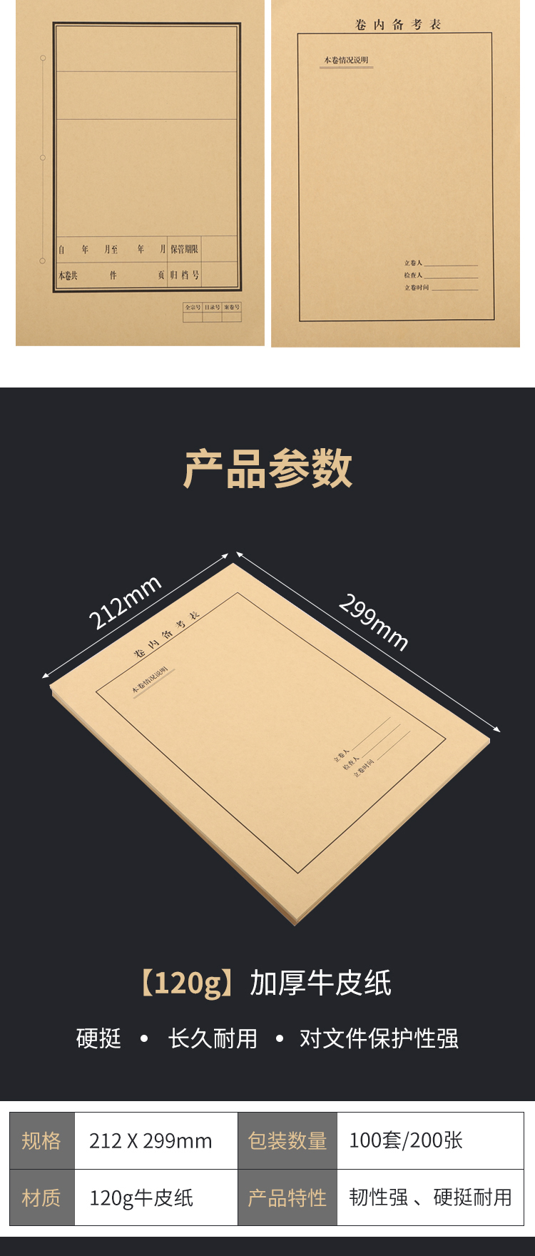 A4牛皮纸卷内备考表 档案文书卷宗100套/包
