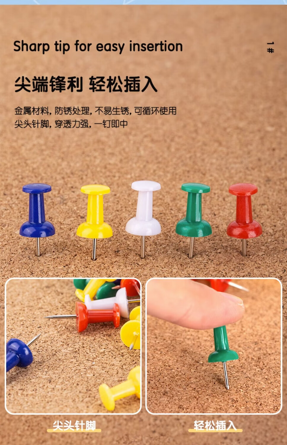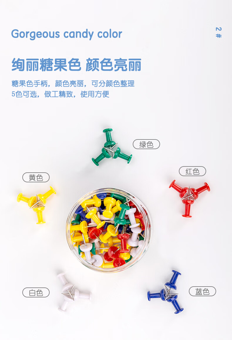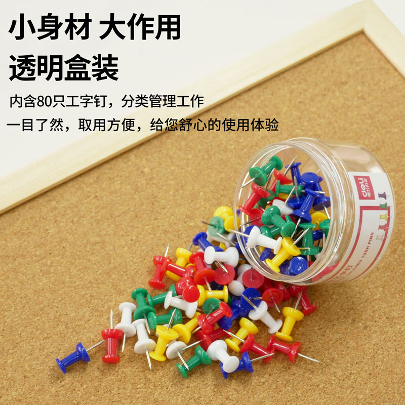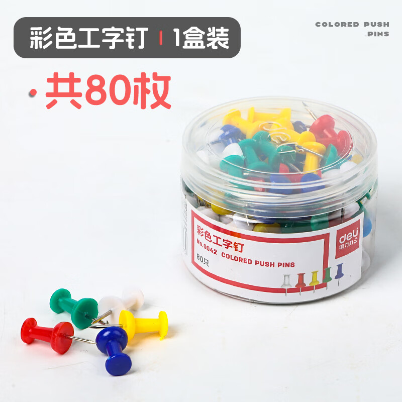 得力 彩色工字钉0042 美式图钉80枚/筒