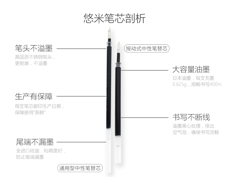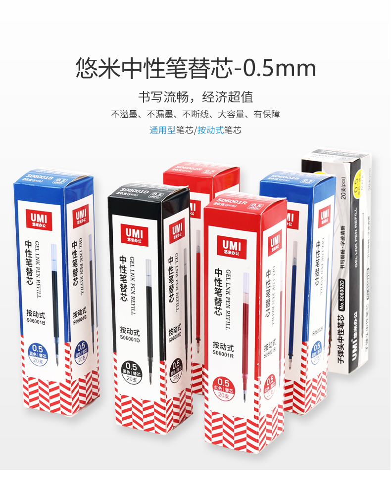 悠米S06001B按动式中性笔替芯0.5蓝色(子弹头)