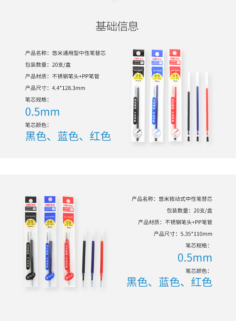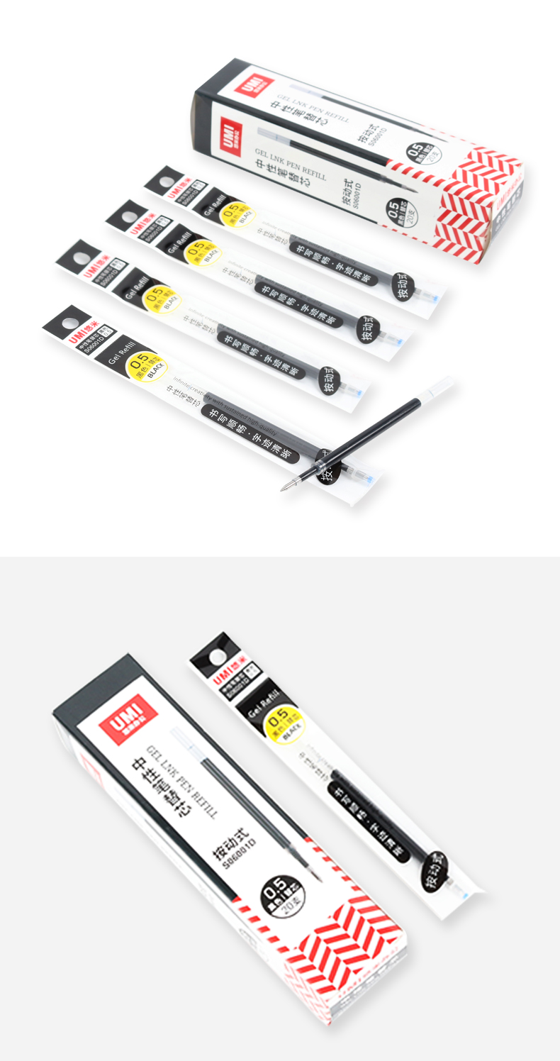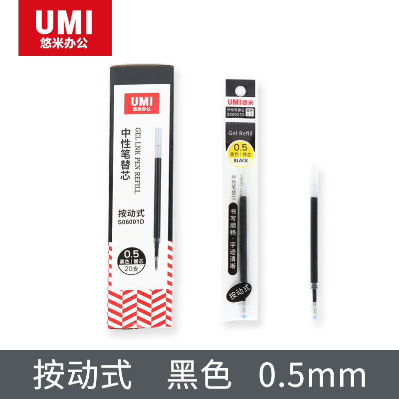 悠米S06001D按动式中性笔替芯0.5黑(子弹头)