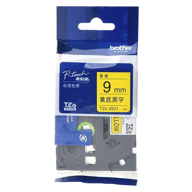兄弟TZe-Z621 9mm黄底黑字 标签机色带 适用PT系列标签机
