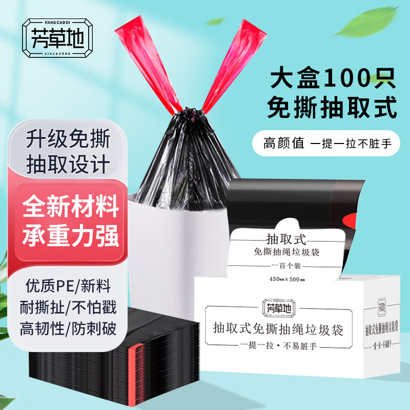 免撕抽绳垃圾袋45*50cm (100个/卷)