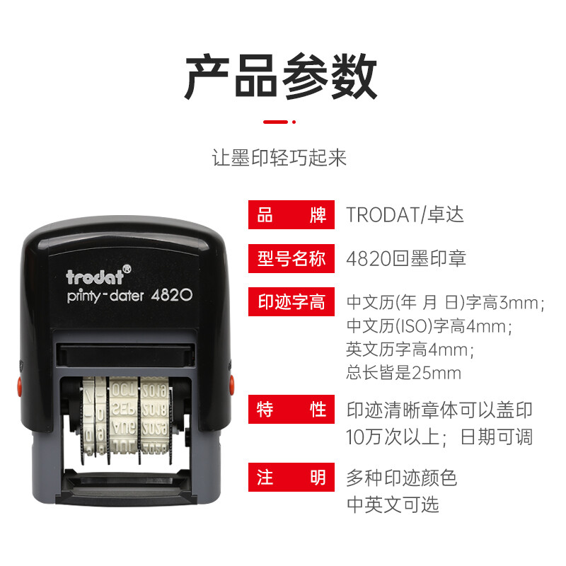 卓达(trodat) 4820日期印章回墨印章可调日期
