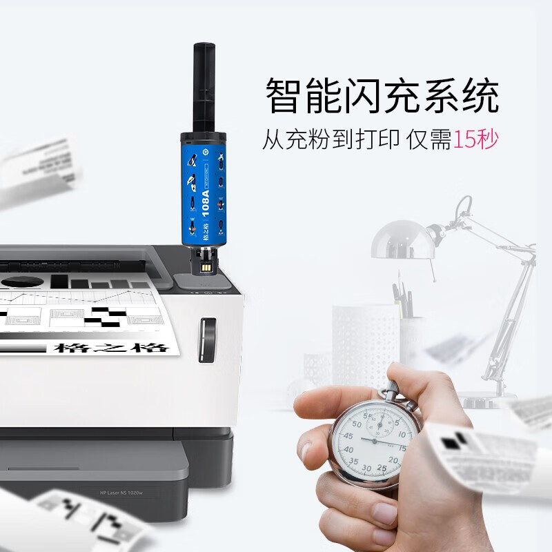 格之格108A粉盒适用惠普W1108A智能闪充粉盒NS1020c 1020w墨盒 MFP 1005W 109a鼓架 20000页 1020 1005 1005C打印机硒鼓墨盒碳粉盒