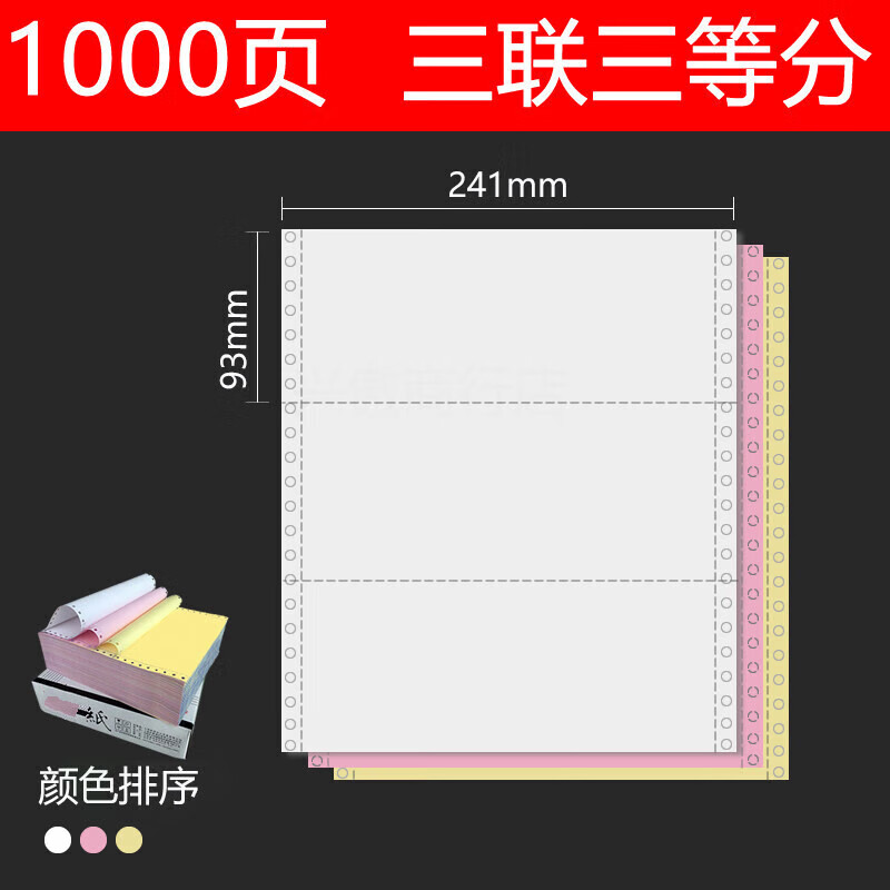 241-3-1/3电脑打印纸 一式三联三等分 彩色