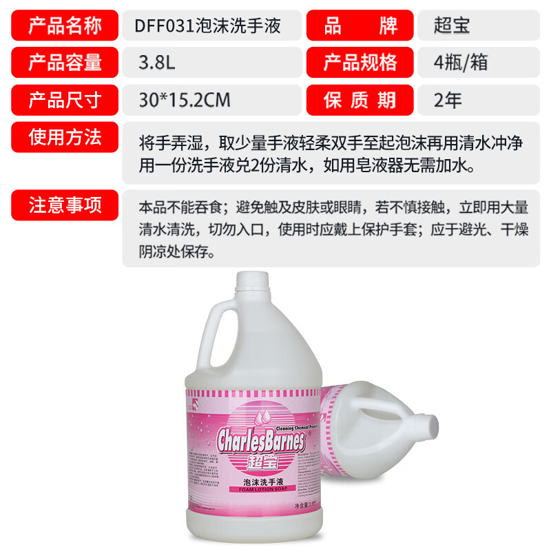 超宝DFF010-1 泡沫洗手液3.8L/桶