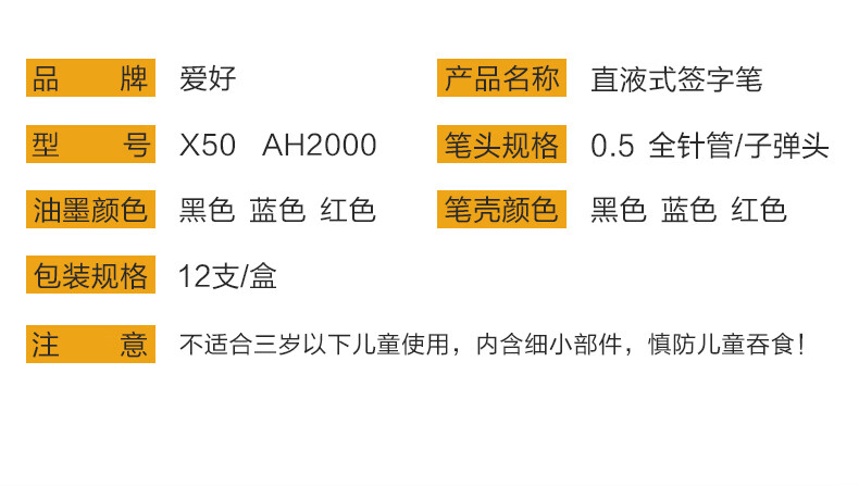 爱好直液式走珠笔中性笔0.5mm 2000A(单支装)