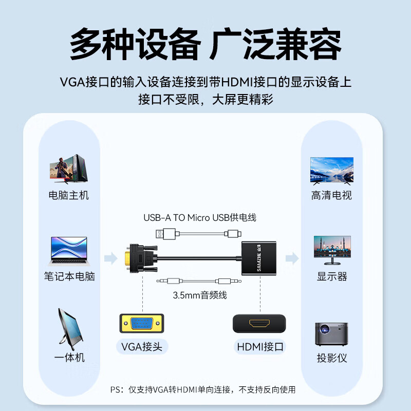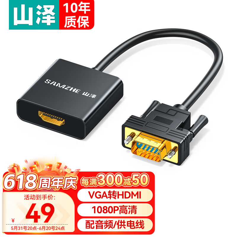 山泽 VGA转HDMI线转换器带音频 VH2024