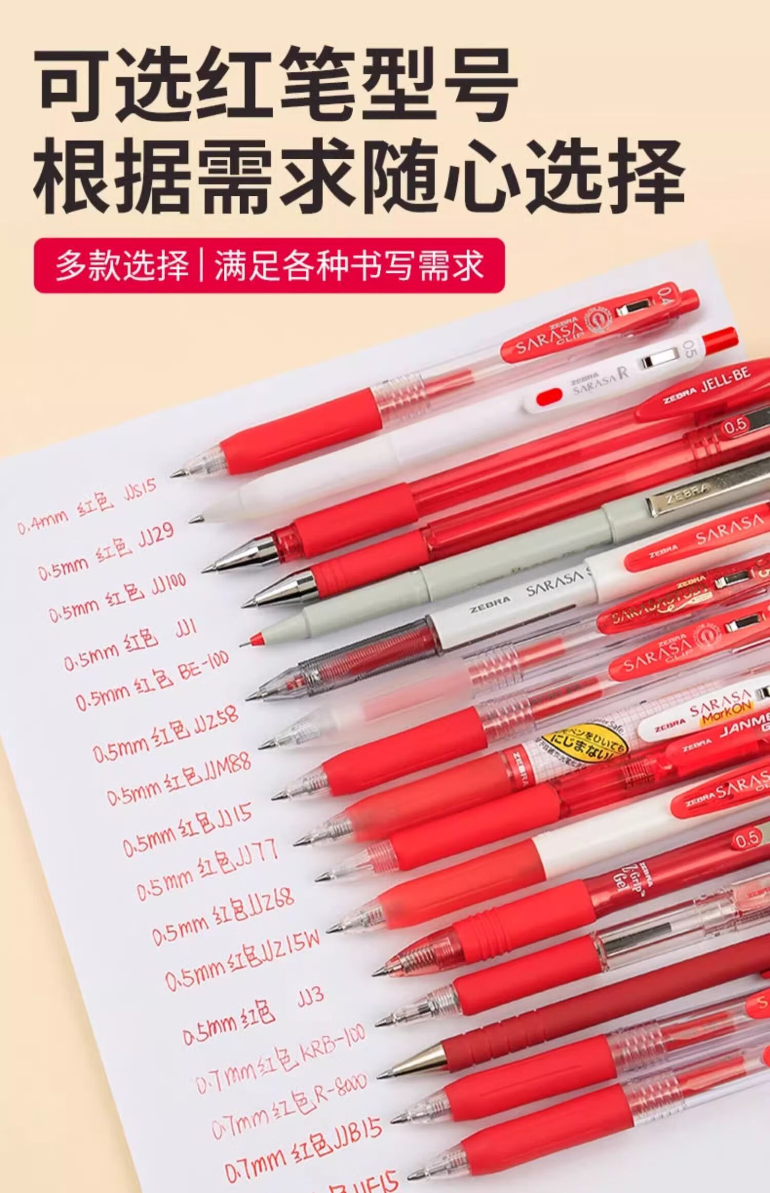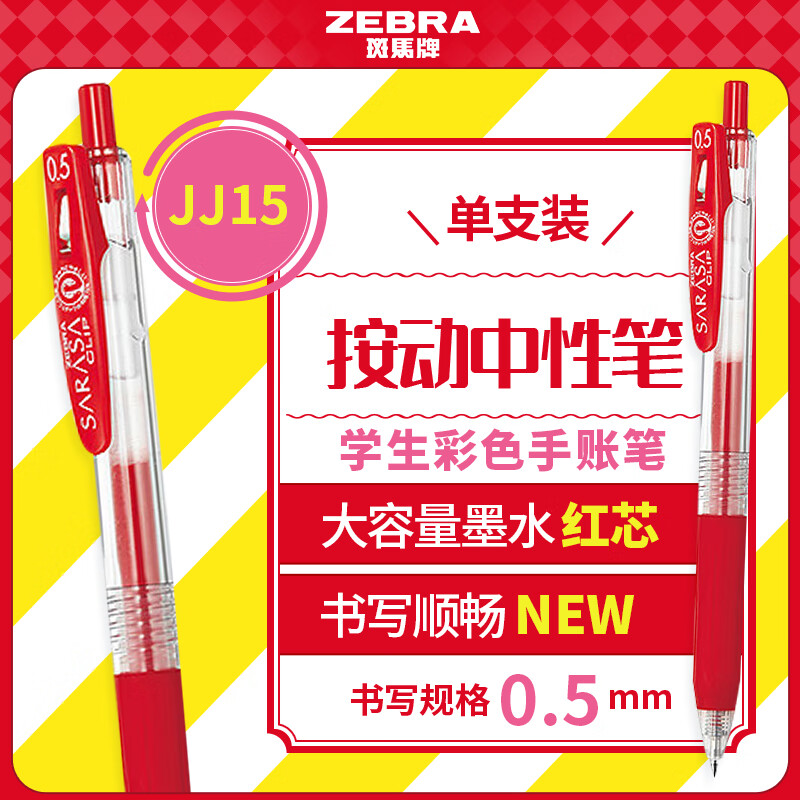 斑马(ZEBRA)JJ15按动中性笔 0.5mm水笔红色 单支装