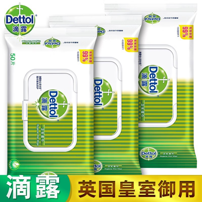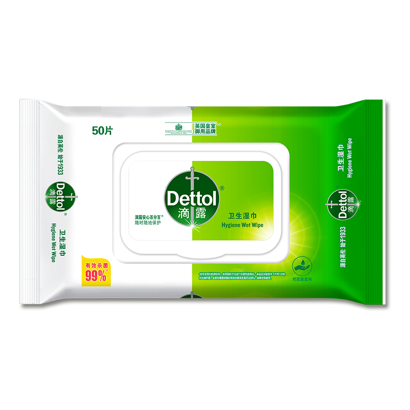 滴露(Dettol)卫生湿巾湿纸巾杀菌抑菌 50片*1包