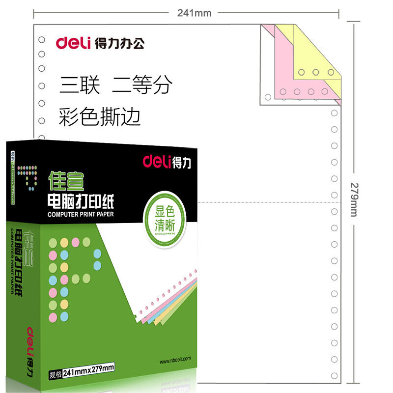 天和益和专用 三联二等分彩色撕边打印纸